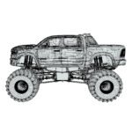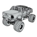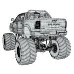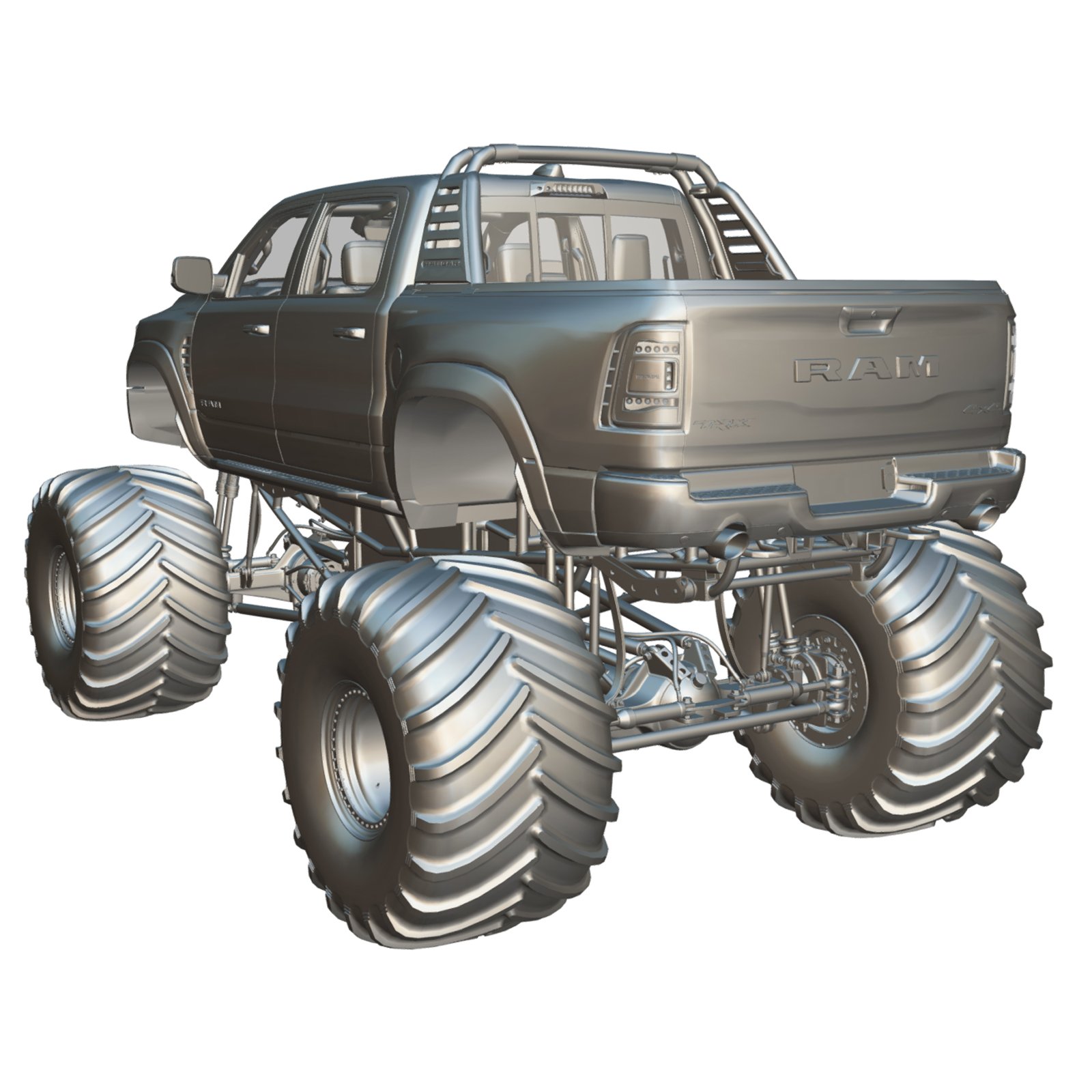 Created with precision in 3ds Max 2021, this model showcases an enhanced, monster-style configuration featuring a lifted suspension, oversized off-road tires, and a muscular exterior design.