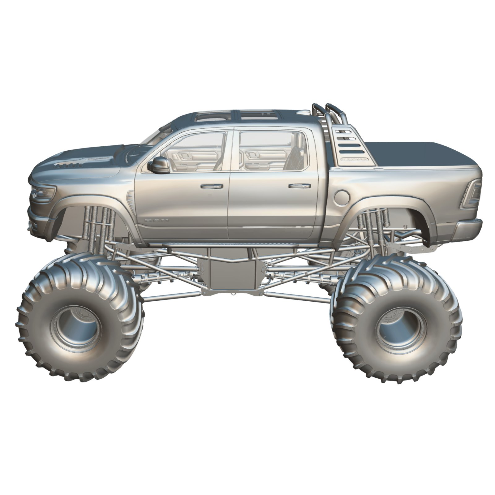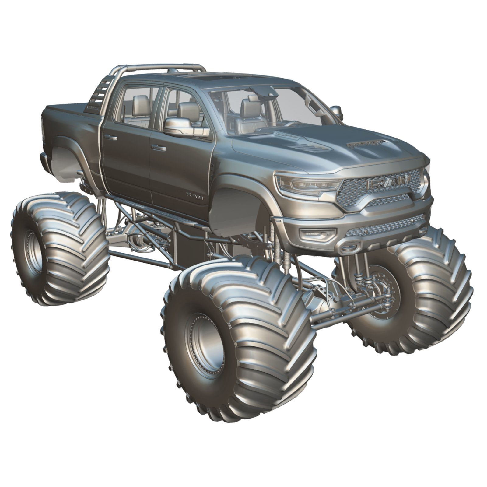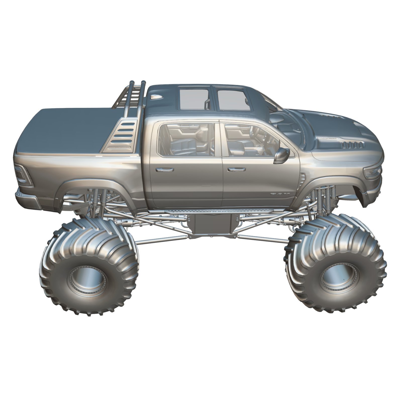 The Dodge RAM 1500 TRX 2021 Monster 3D Model is a detailed digital recreation of the TRX performance truck with monster-style suspension and off-road modifications. Built in 3ds Max 2021, it comes in .MAX, .FBX, and .OBJ + .MTL formats for easy use in any workflow. No textures are included, allowing full customization of materials and finishes. With clean topology and accurate proportions, this model is perfect for renders, animations, game scenes, and automotive concept design.