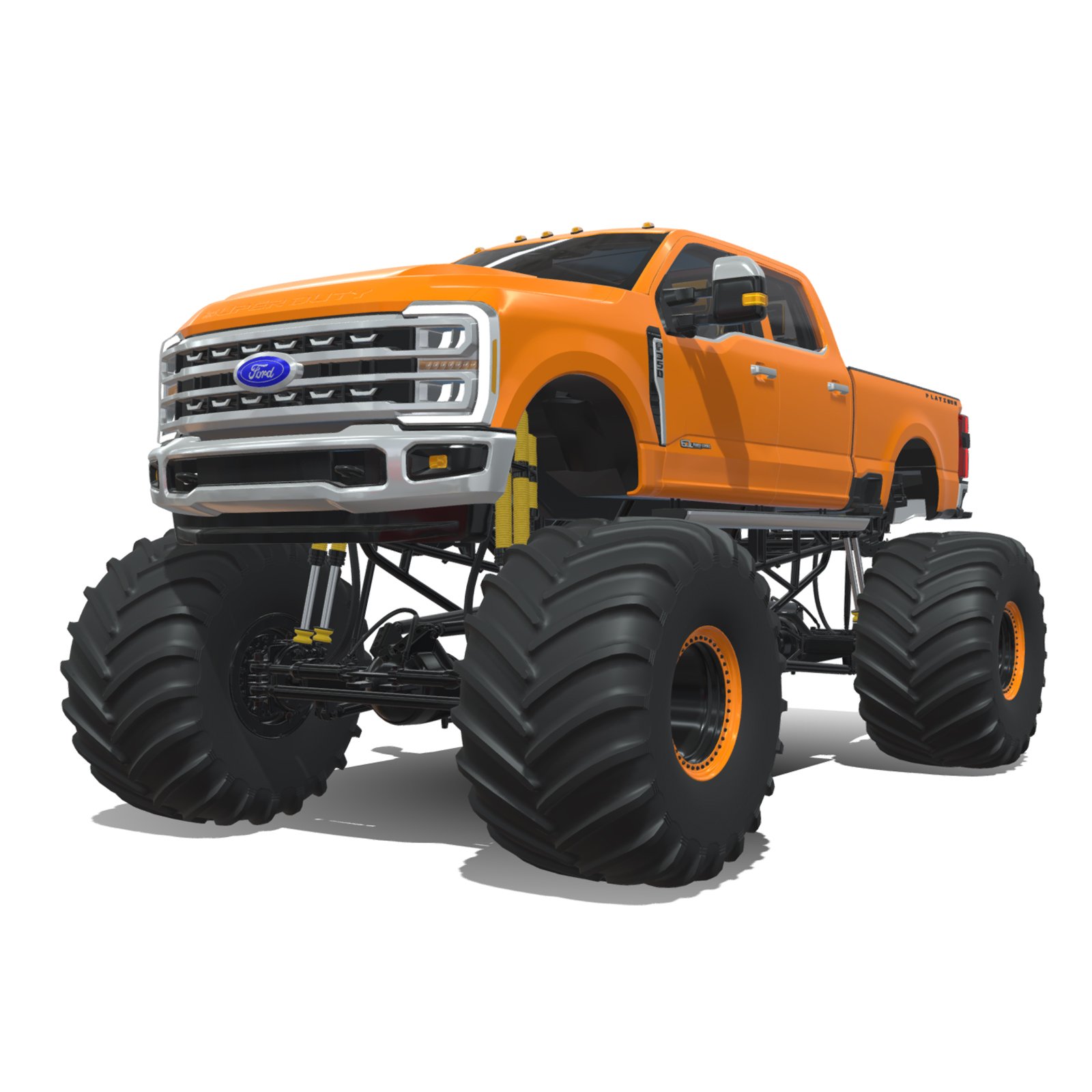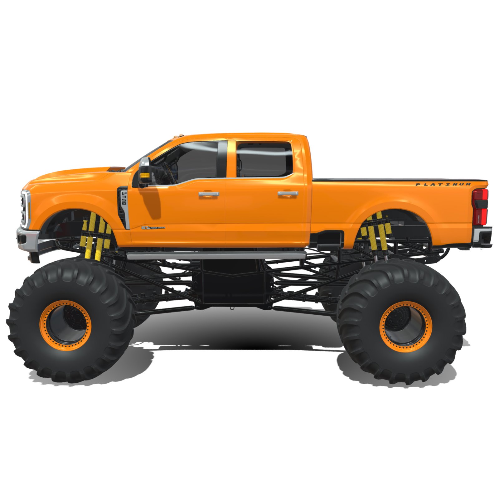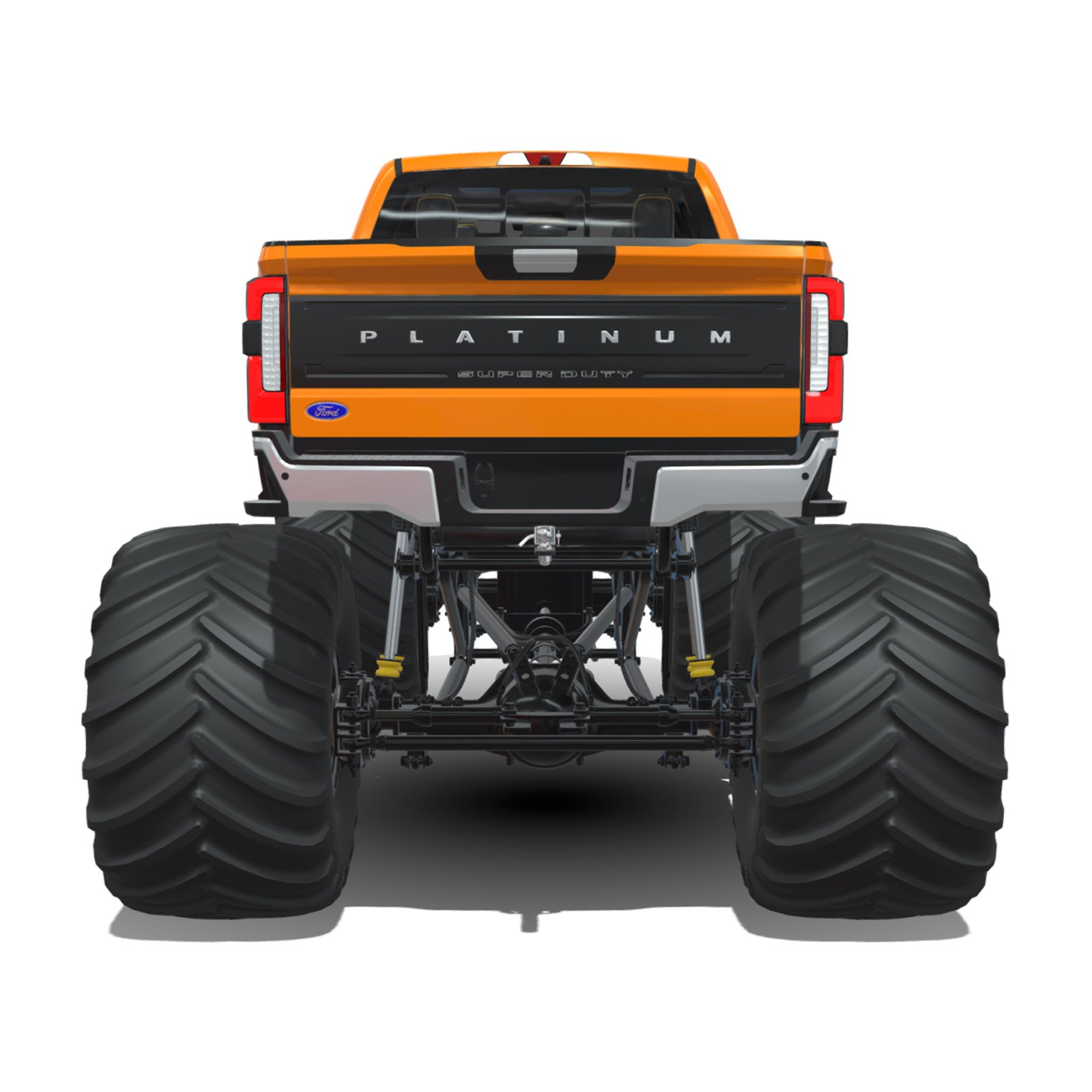 - High-Quality Monster Truck Design: Based on the Ford F-350 Platinum 2024, featuring lifted suspension, large off-road tires, and enhanced detailing.