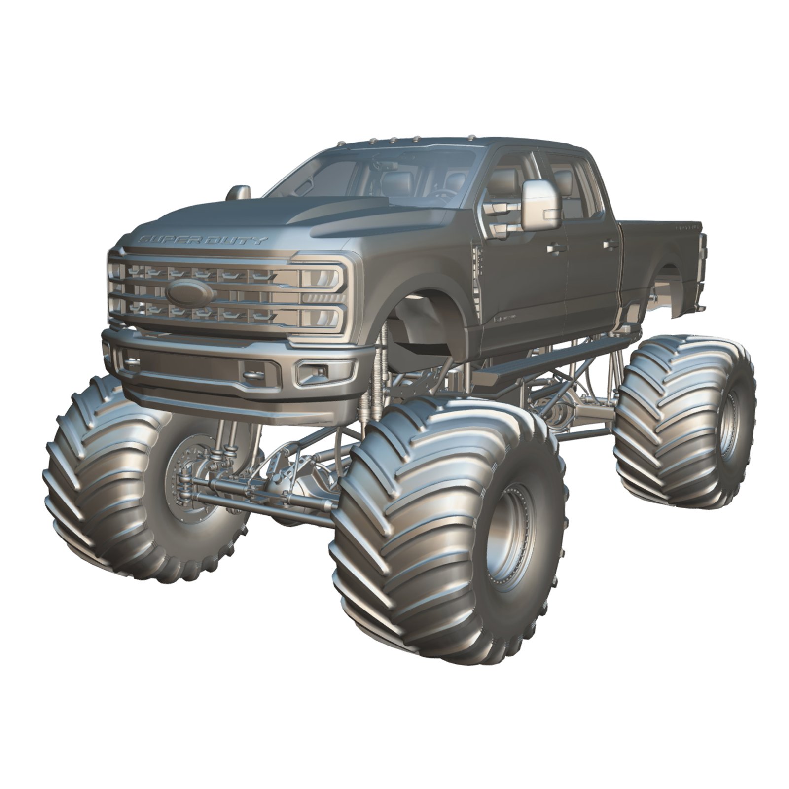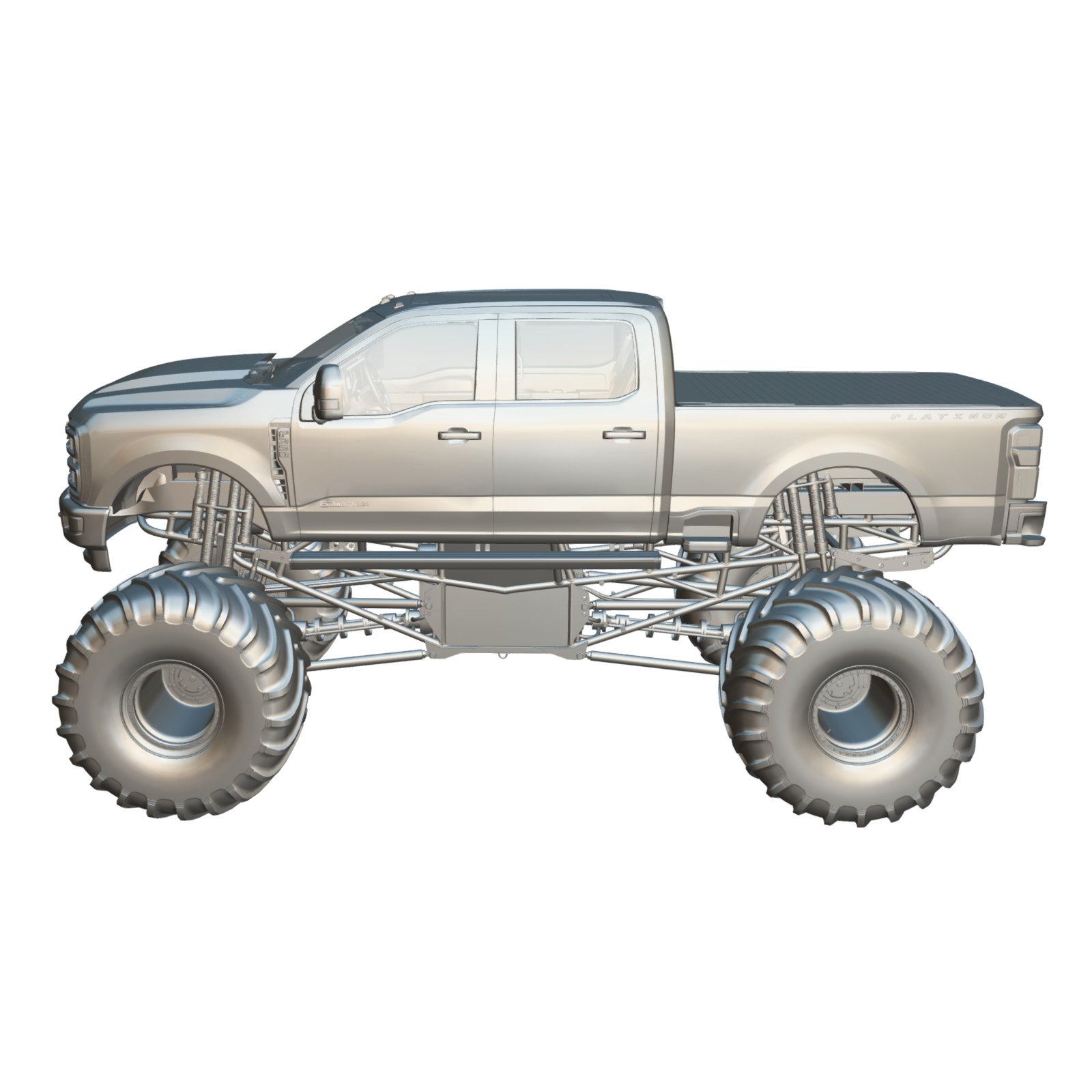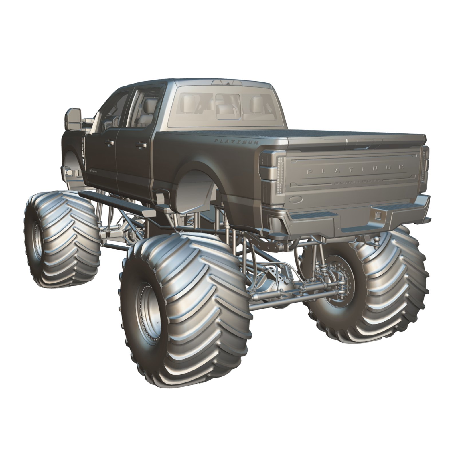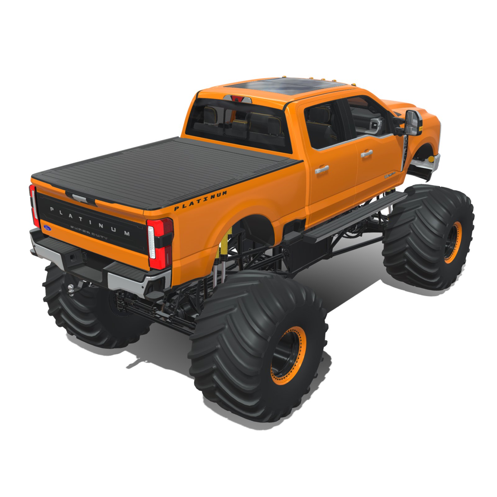 - High-Quality Monster Truck Design: Based on the Ford F-350 Platinum 2024, featuring lifted suspension, large off-road tires, and enhanced detailing.
