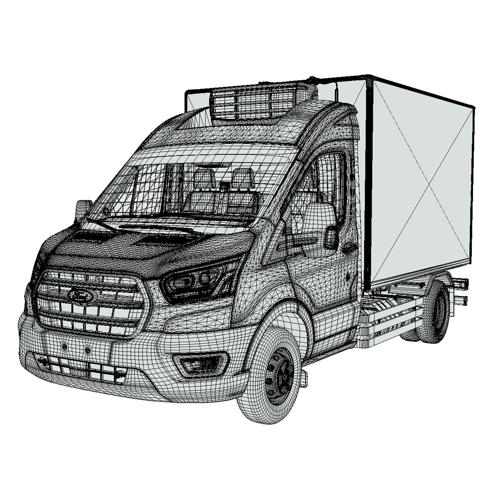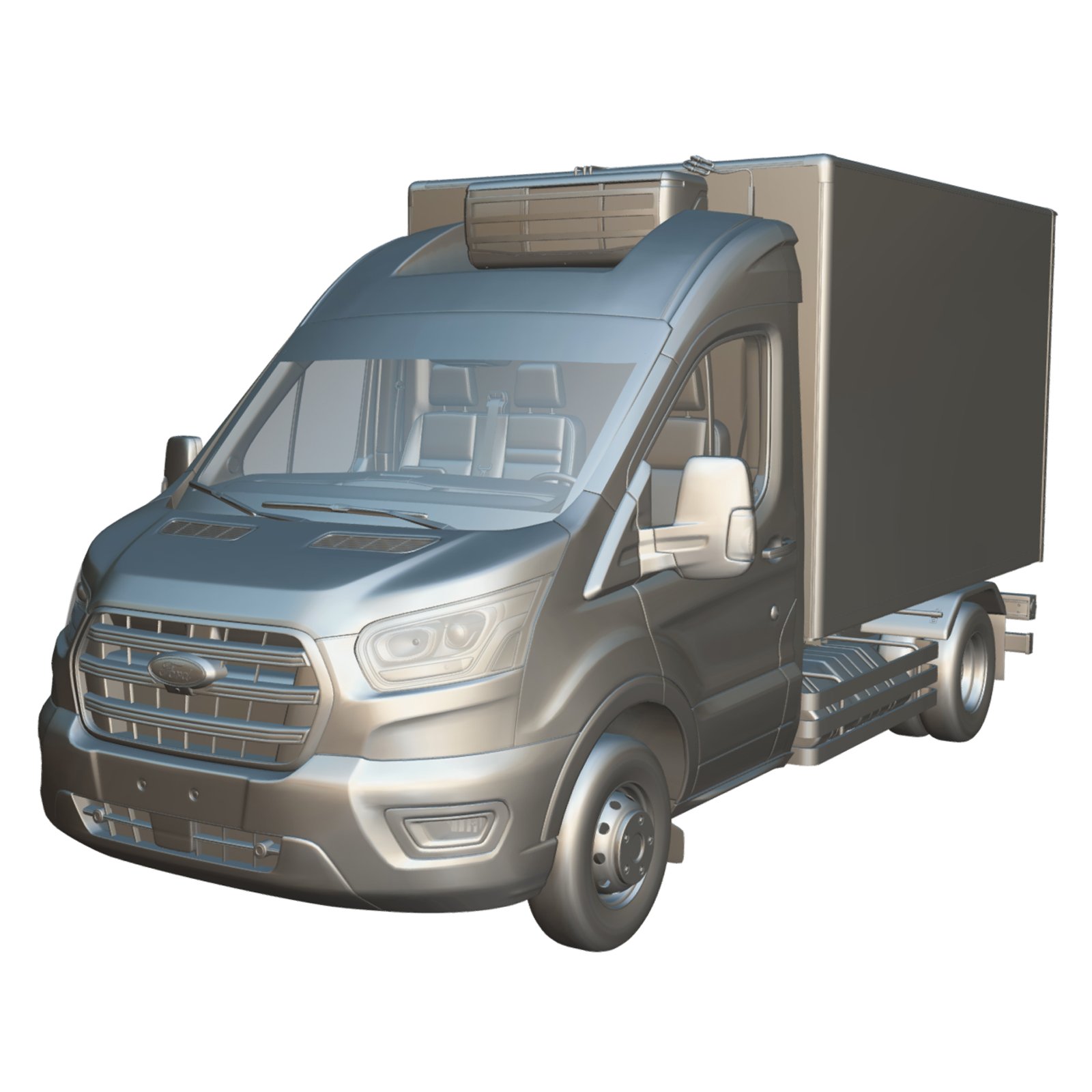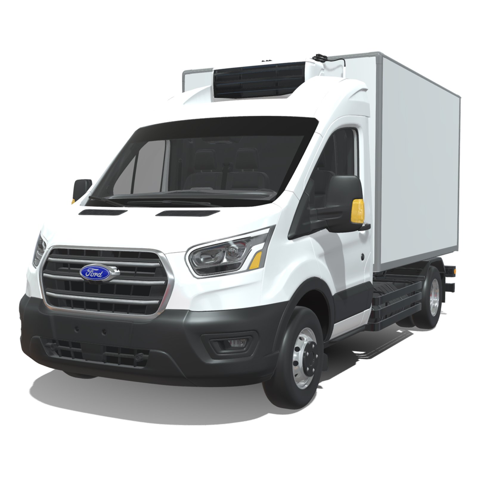 A highly detailed Ford Transit MK8 2020 Short Refrigerated 3D model featuring accurate exterior design with a refrigerated cargo box and a fully modeled interior cabin. Built with clean topology and organized geometry for easy customization and integration into rendering, animation, simulation, and game development workflows. Textures and UV maps are not included, allowing flexible custom material creation.