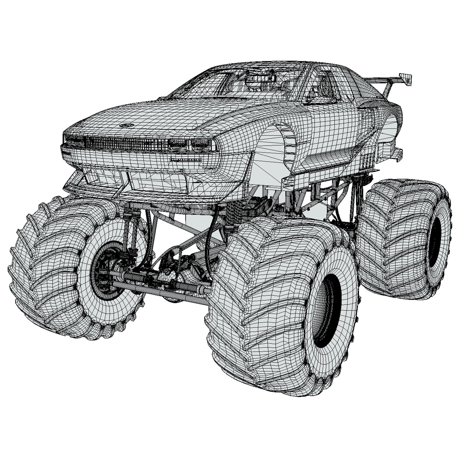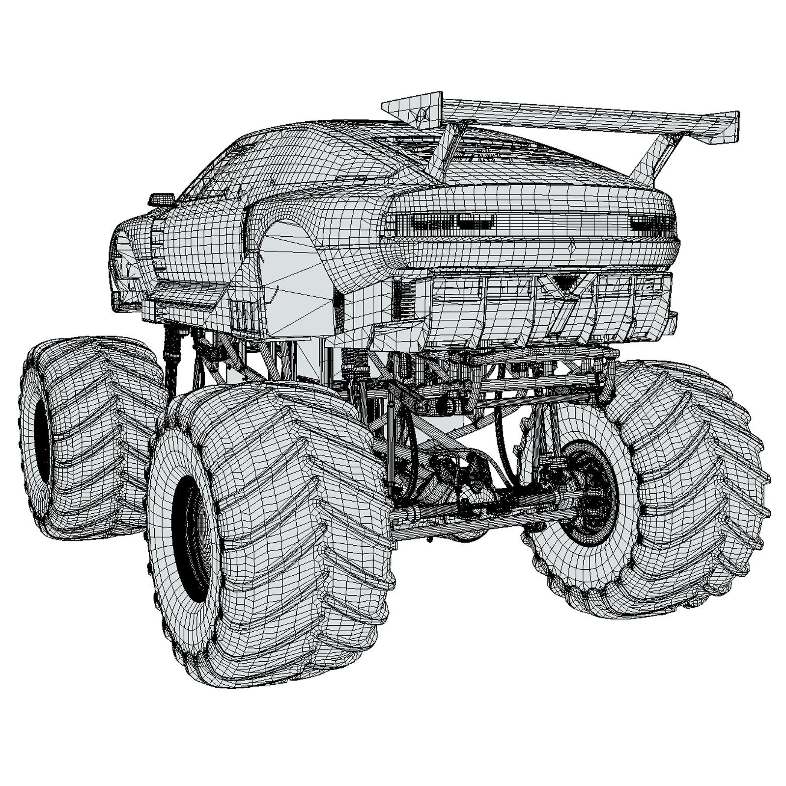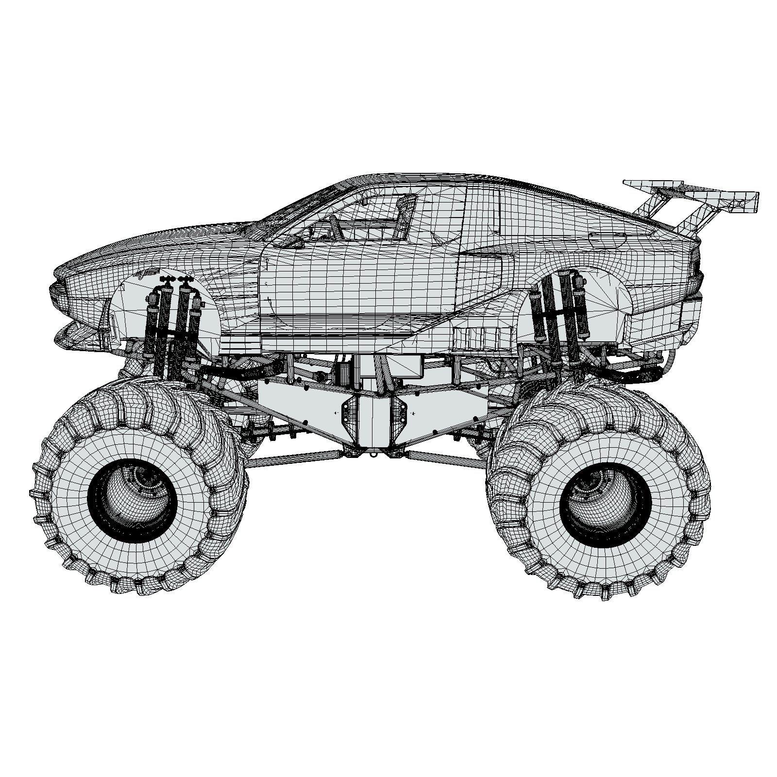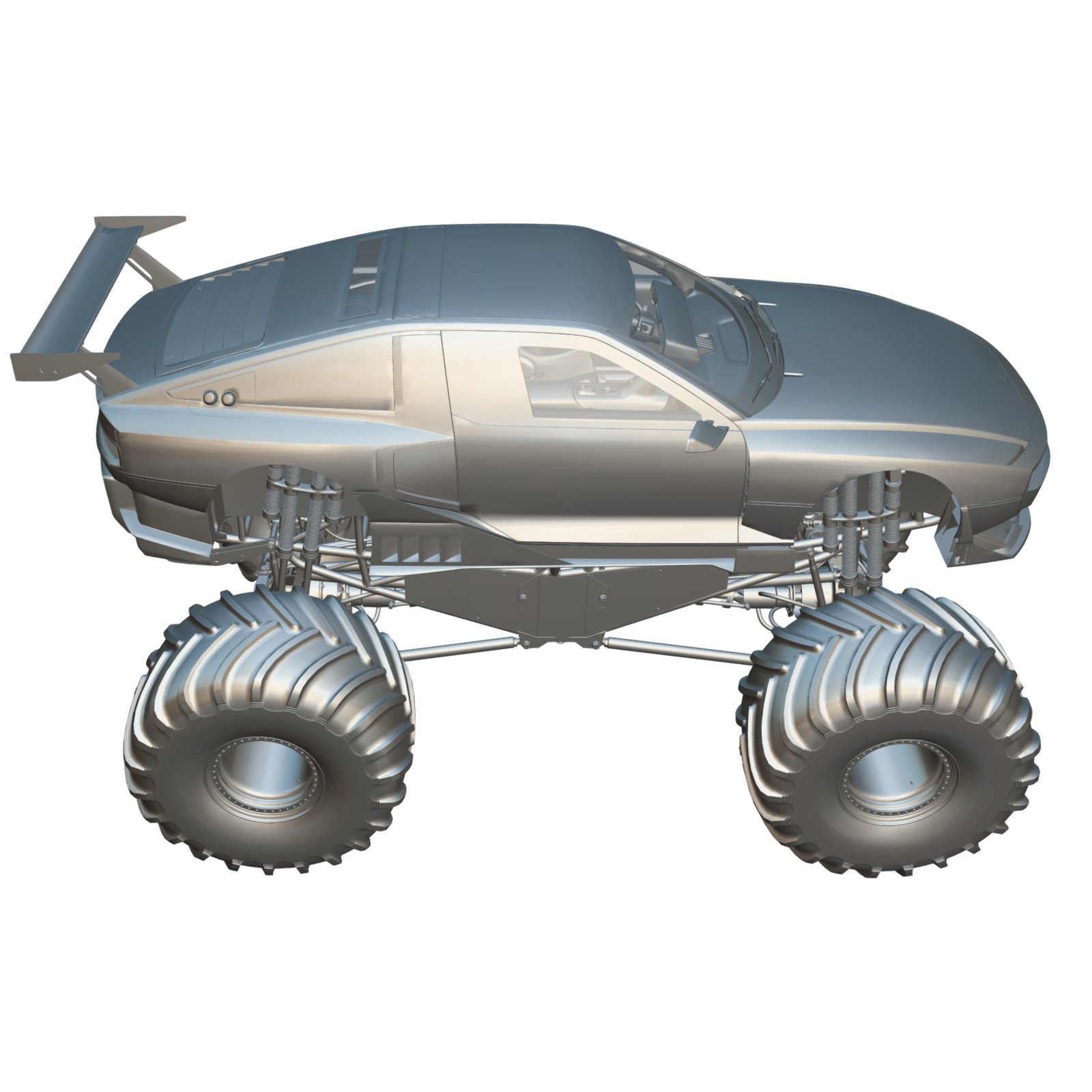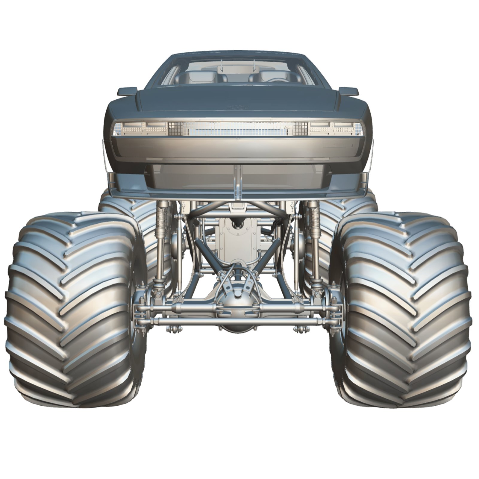 - Monster Conversion Design: Lifted suspension, massive off-road wheels, and widened aggressive stance.