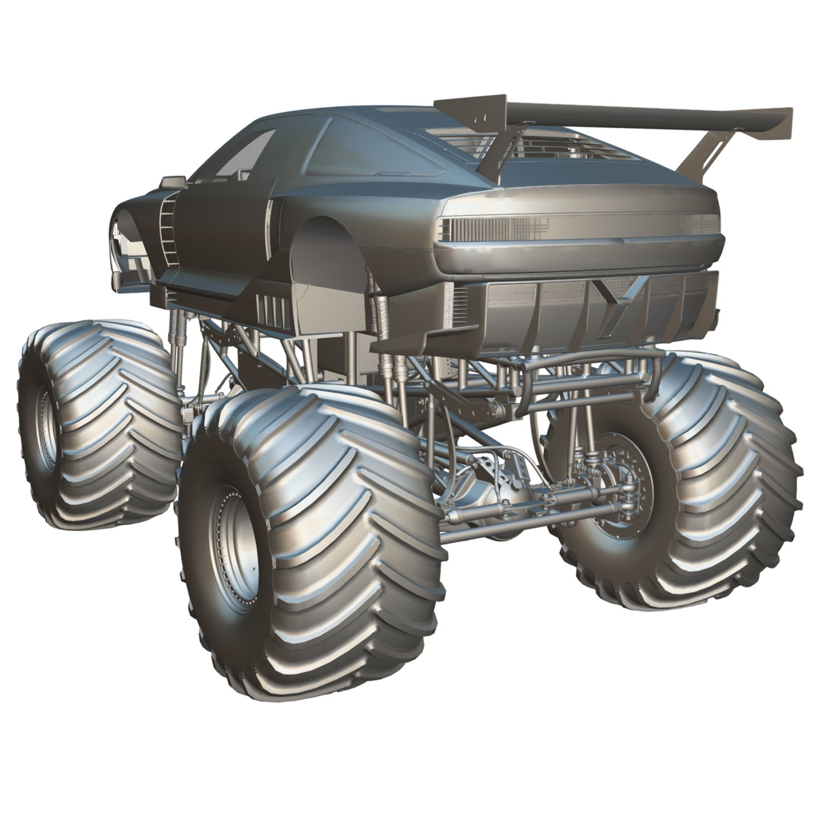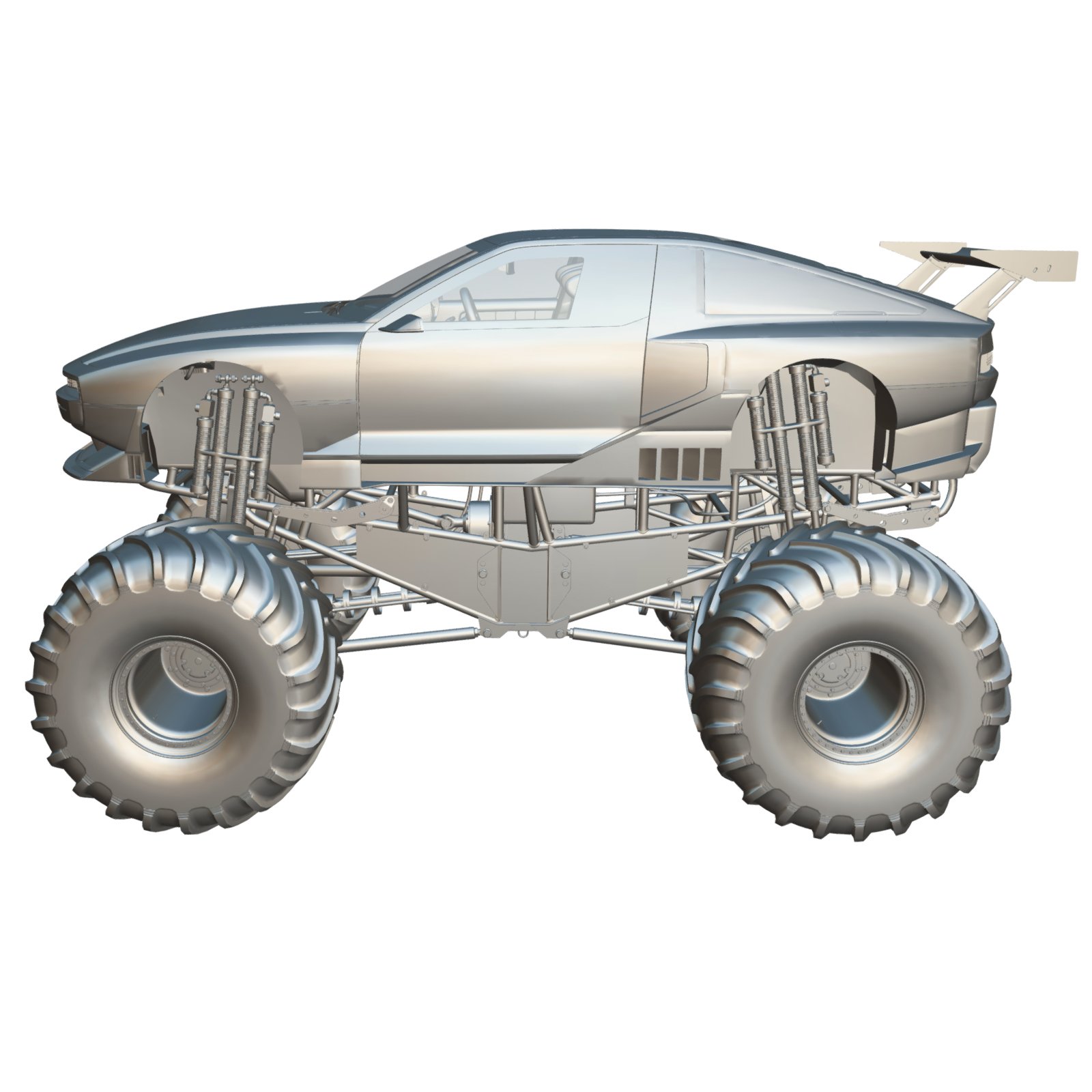 Created in 3ds Max 2021, this model enhances the iconic cyber-retro design with lifted suspension, oversized off-road tires, and aggressive proportions, giving the N Vision 74 a powerful monster-truck presence.
