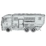 - Accurate exterior detailing, including cabin, windows, roof structures, body extensions, wheels, and utility compartments.