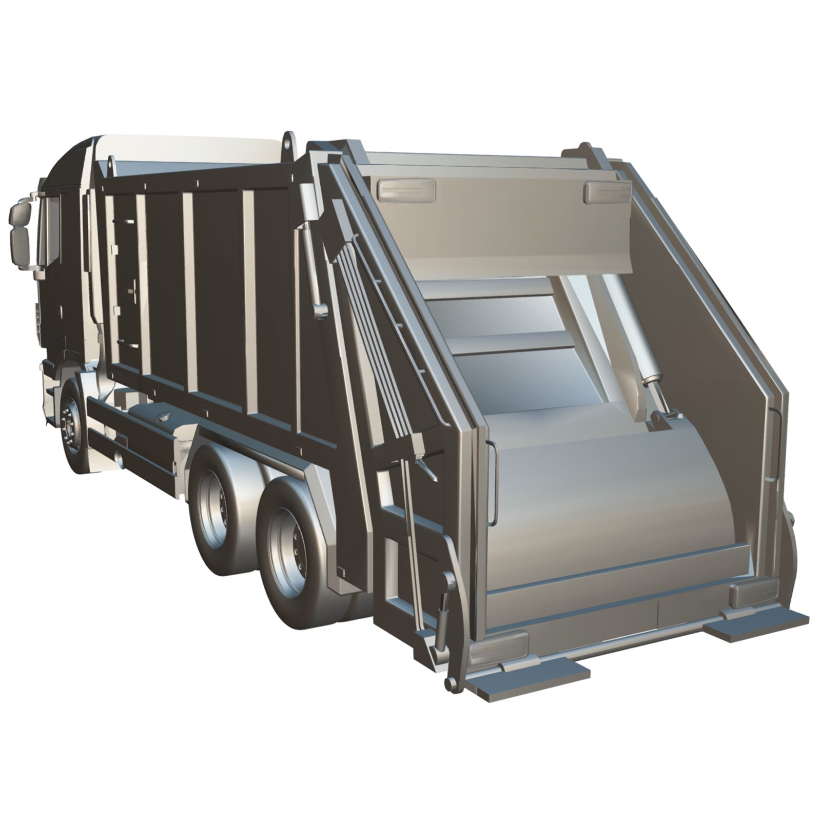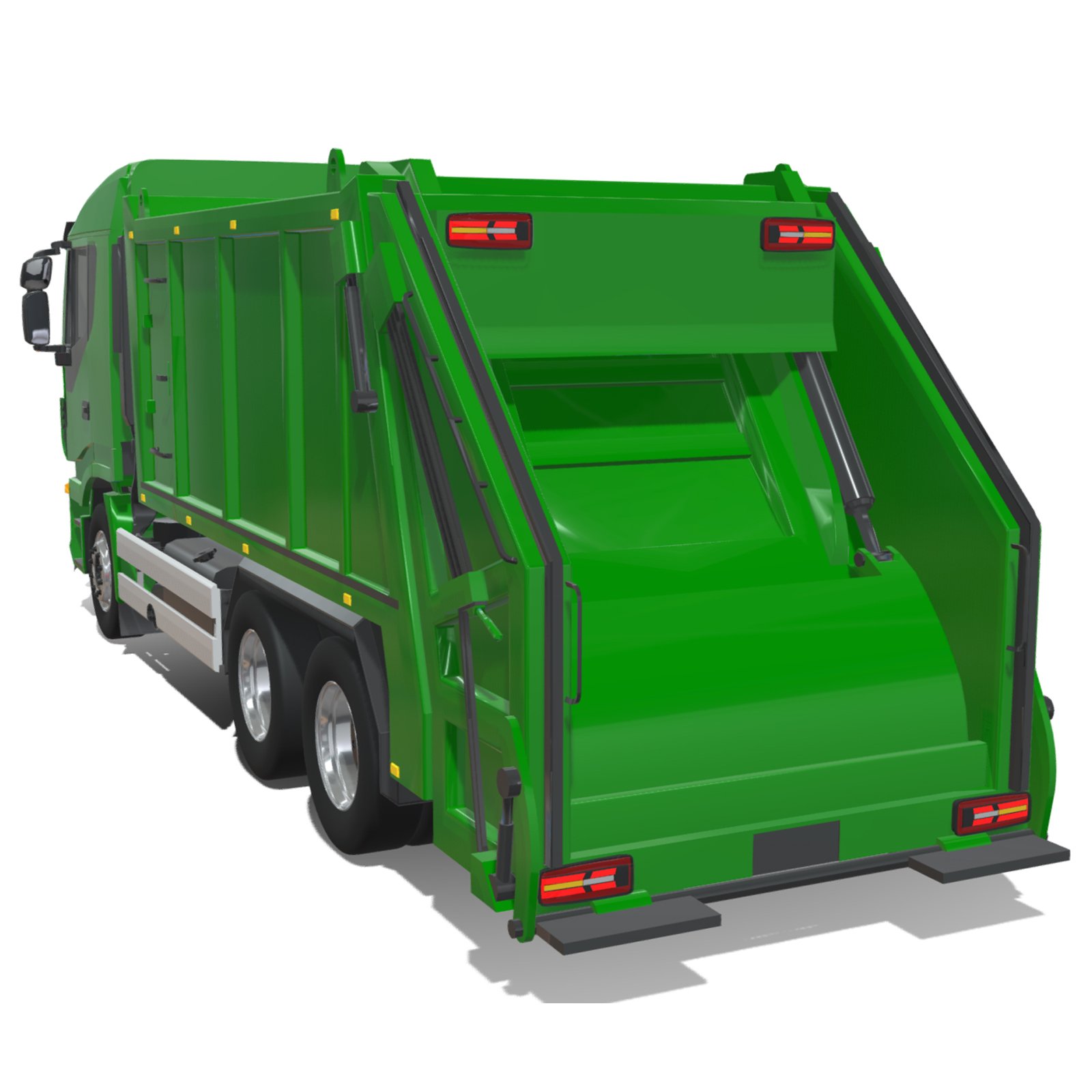 - Realistic structural elements: hopper, compactor area, and rear loading section