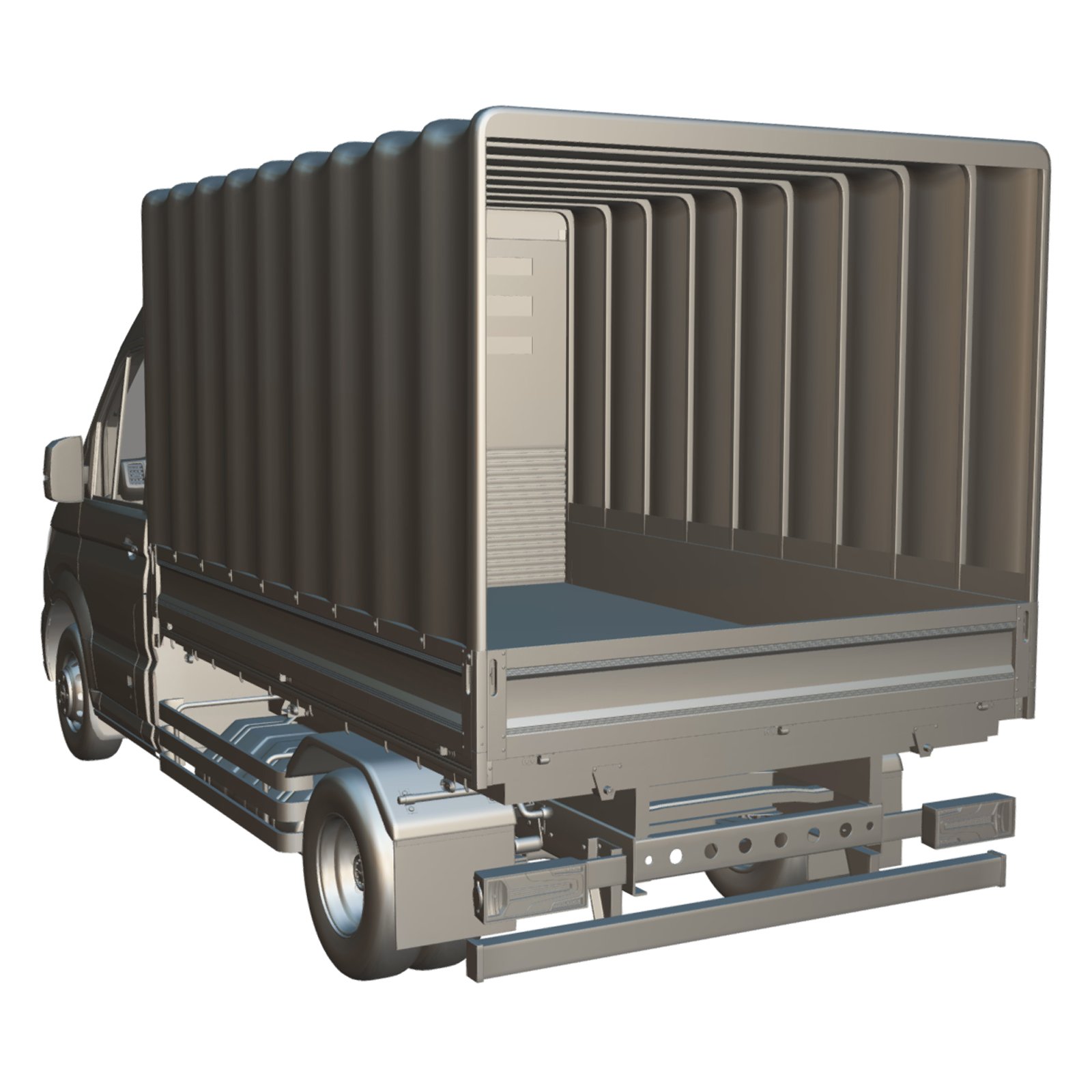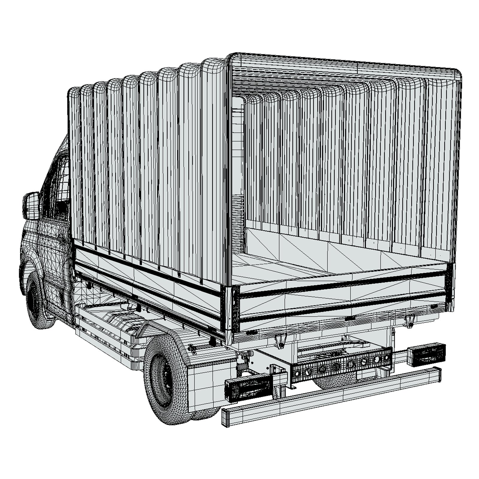- Realistic canvas-covered flatbed cargo structure