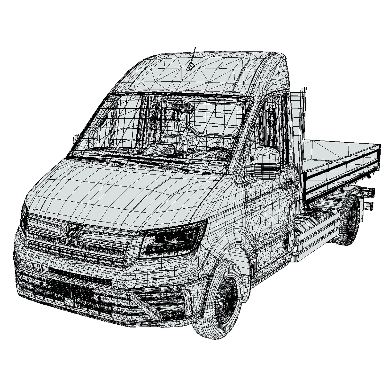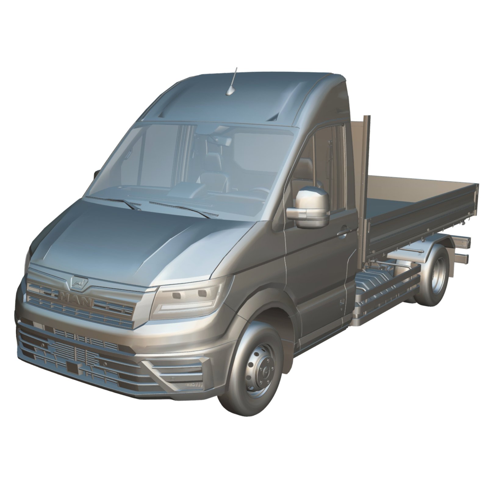 High-quality MAN TGE 2023 Short Flatbed 3D model featuring detailed exterior and interior geometry. Clean topology, production-ready structure, and fully customizable materials. Textures and UV maps not included.
