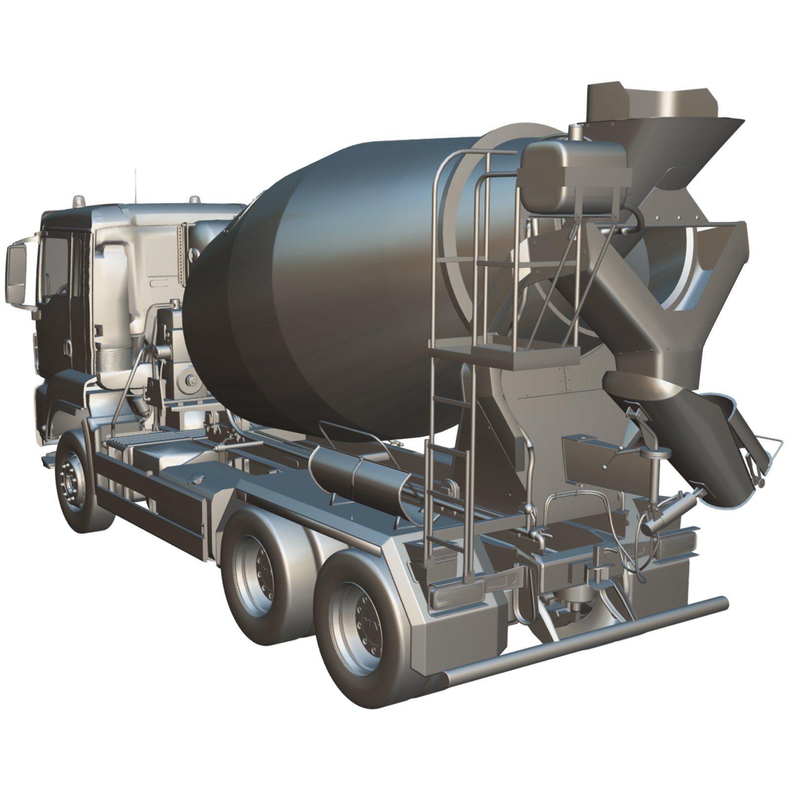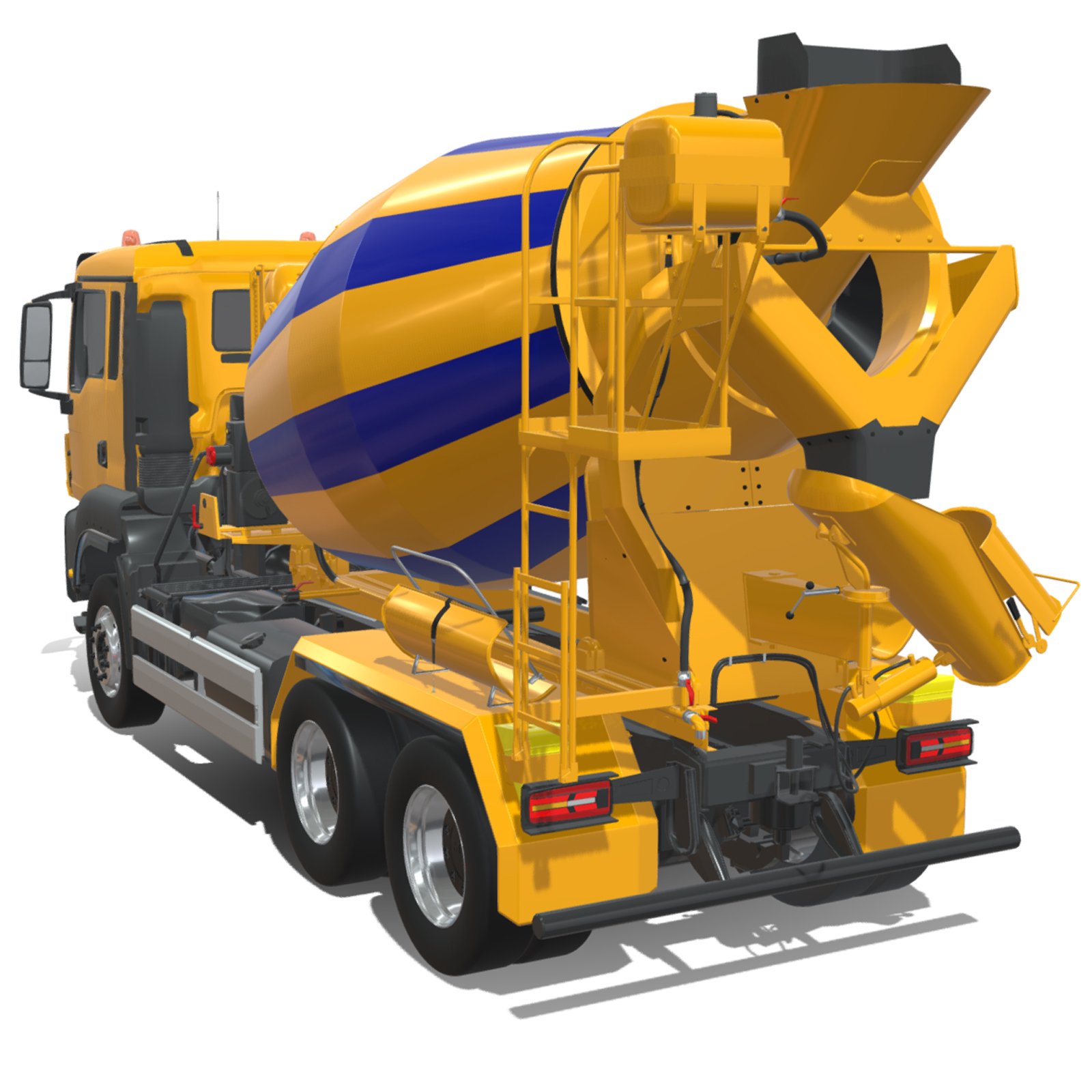 - Concrete Mixer Variant: Features the full drum assembly and mixer truck structure.
