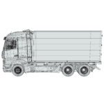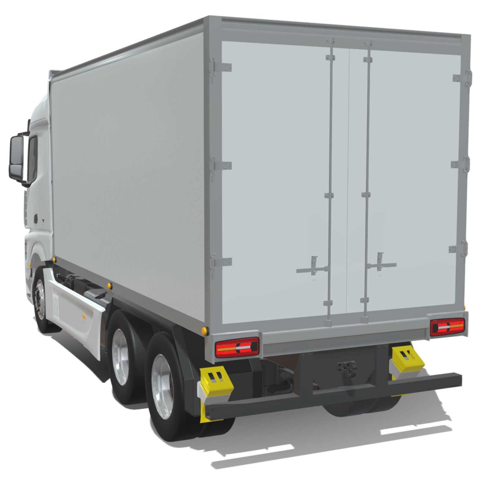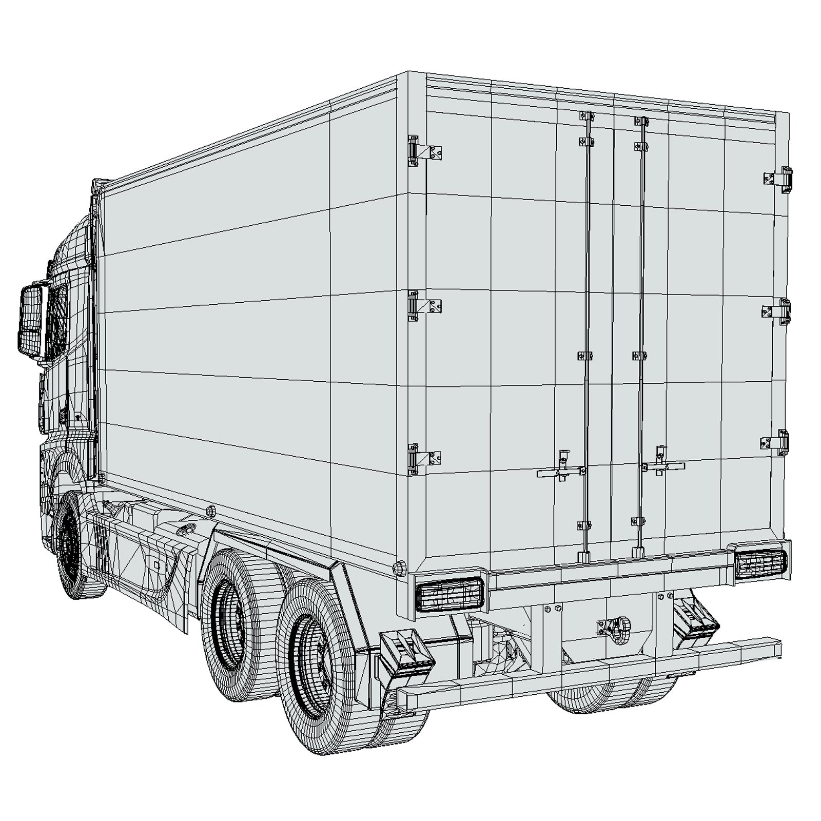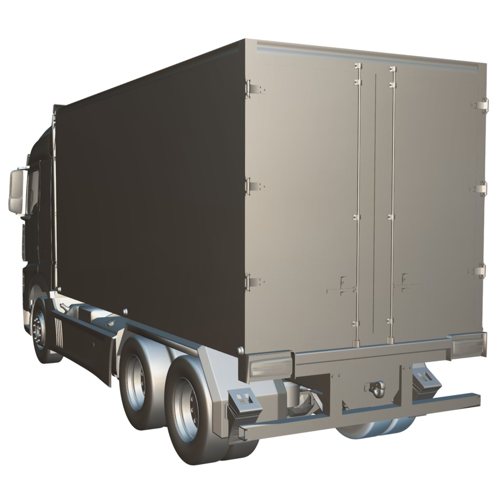 - Detailed exterior components, including cab, chassis, wheels, and cargo box.