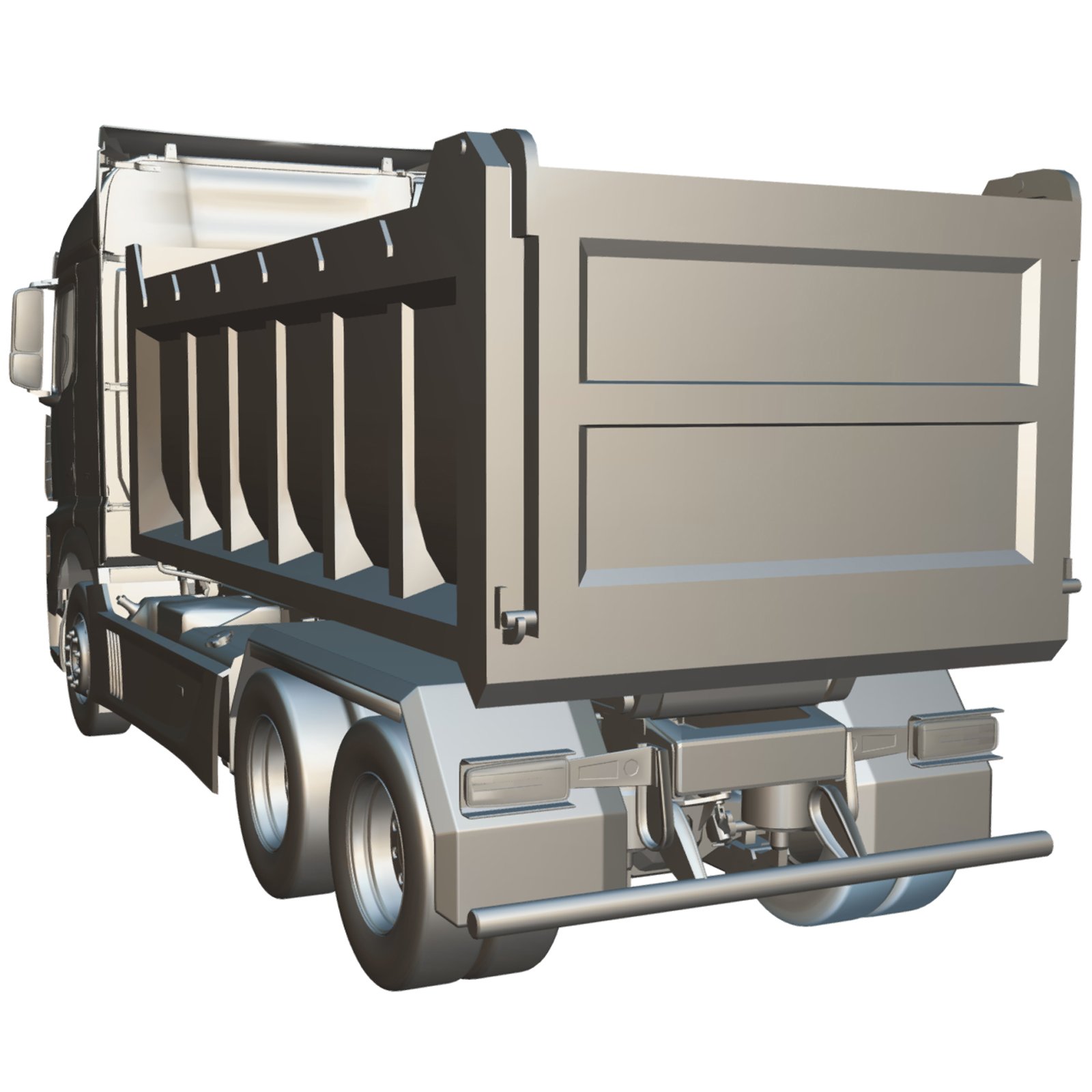 - Detailed Components: Includes cab, chassis, wheels, and dumper bed.