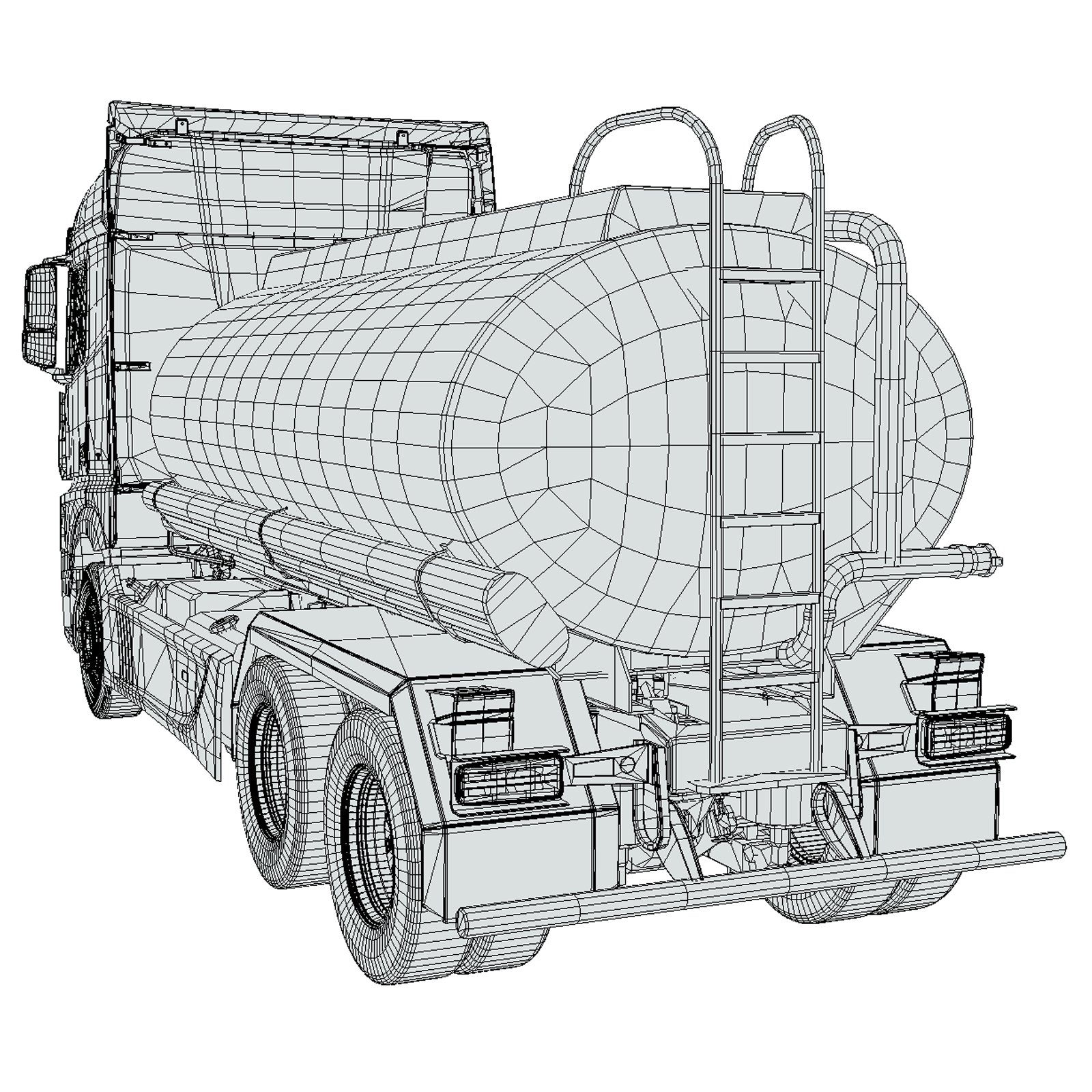 - Detailed cab, chassis, wheels, tank unit, and exterior elements