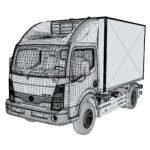 A professional Mitsubishi Fuso eCanter 2024 Long Refrigerated 3D Model created for visualization, simulation, and real-time applications. The model features a detailed exterior with a compact refrigerated cargo body and a simplified interior for optimal performance. Delivered without textures or UV maps, it allows complete customization for materials, branding, and rendering workflows.
