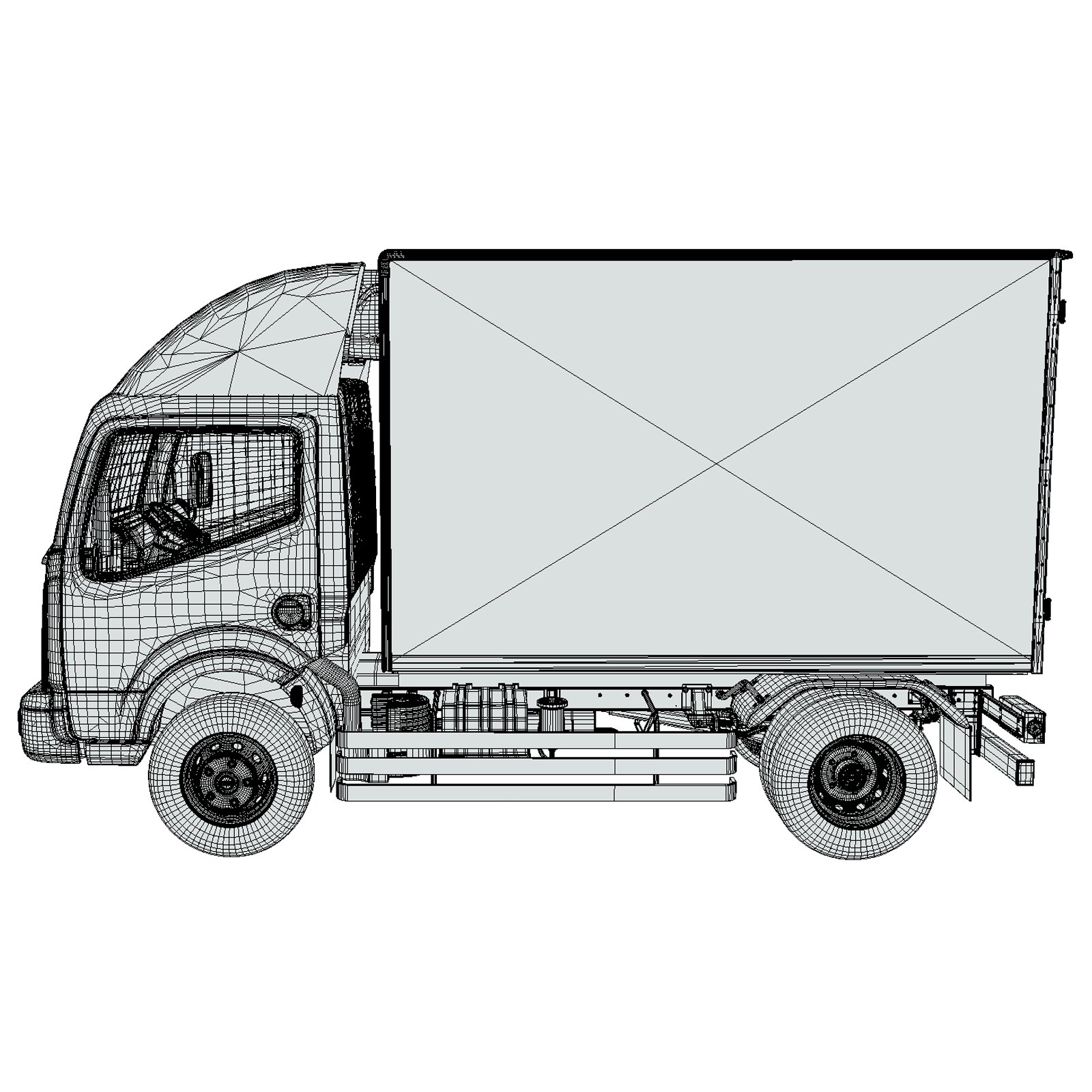 The interior is modeled at a basic level, providing essential cabin elements without unnecessary complexity. With no textures or UV maps included, the model serves as a flexible base mesh, allowing full creative control over materials, colors, and branding. Its clean topology and optimized structure make it suitable for rendering, animation, and real-time applications.