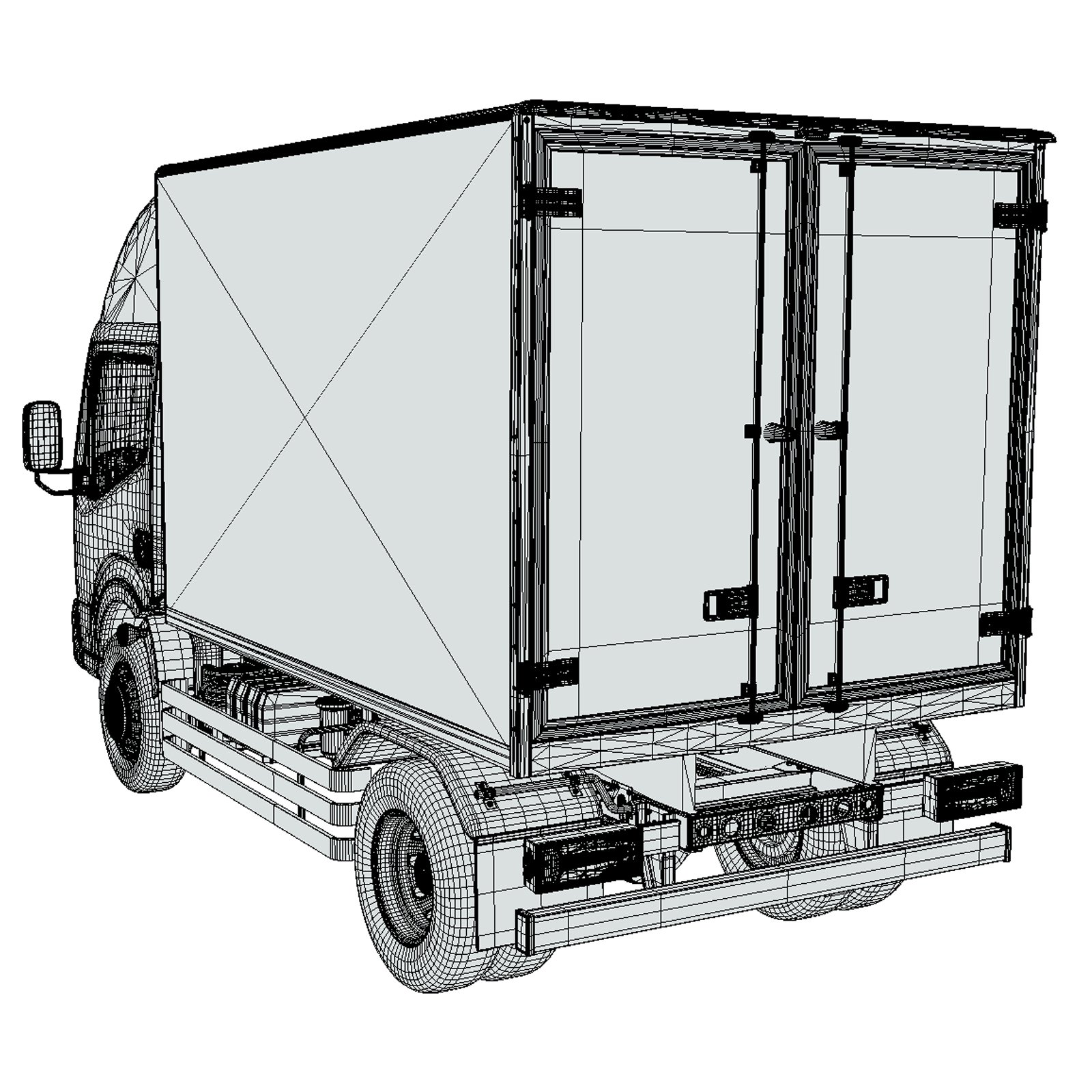 The exterior is modeled in high quality, showcasing the cab, refrigeration unit, and insulated cargo box with attention to accuracy and realism. The interior is provided at a basic quality level, including essential cabin shapes and layout, making it suitable for projects where interior detail is not the primary focus.