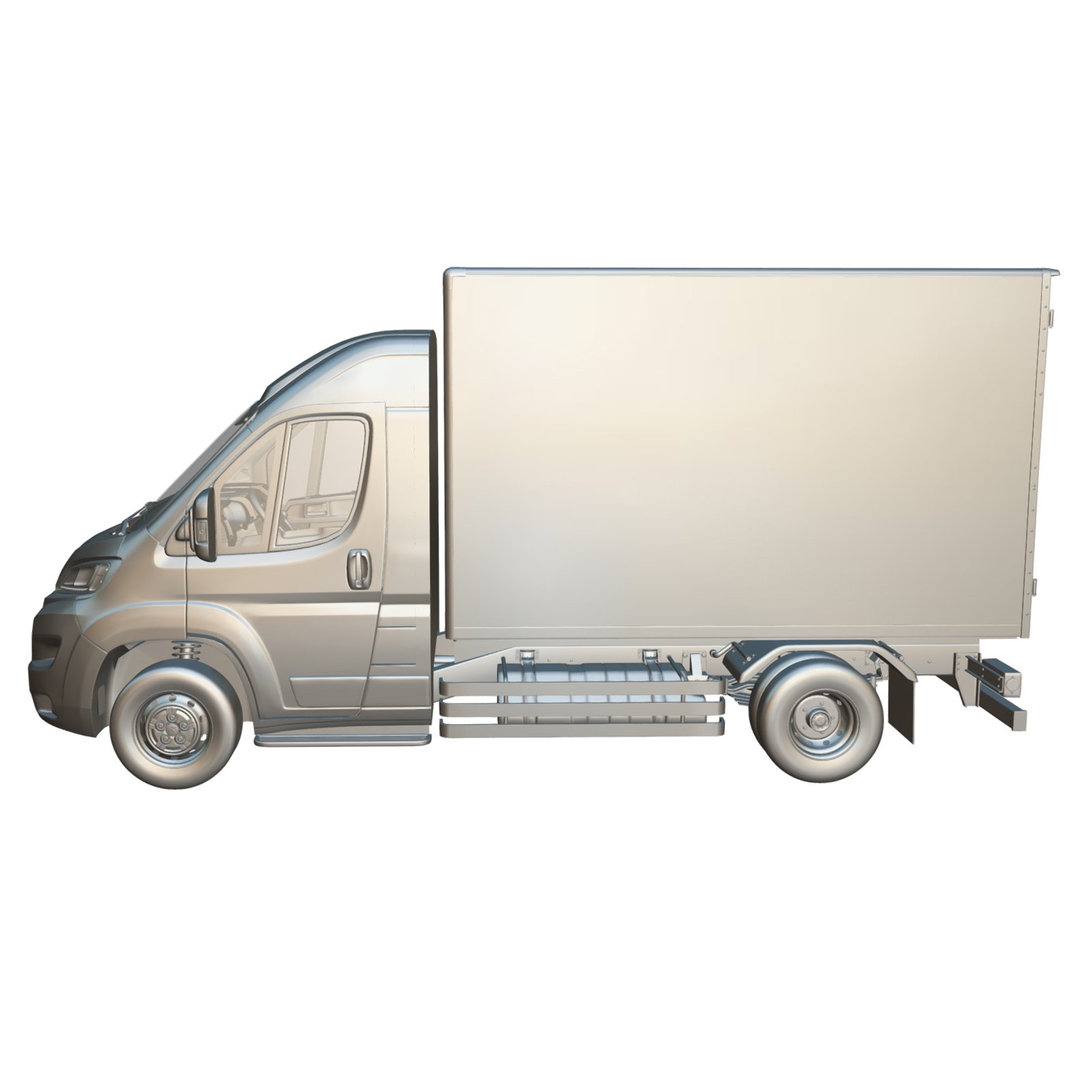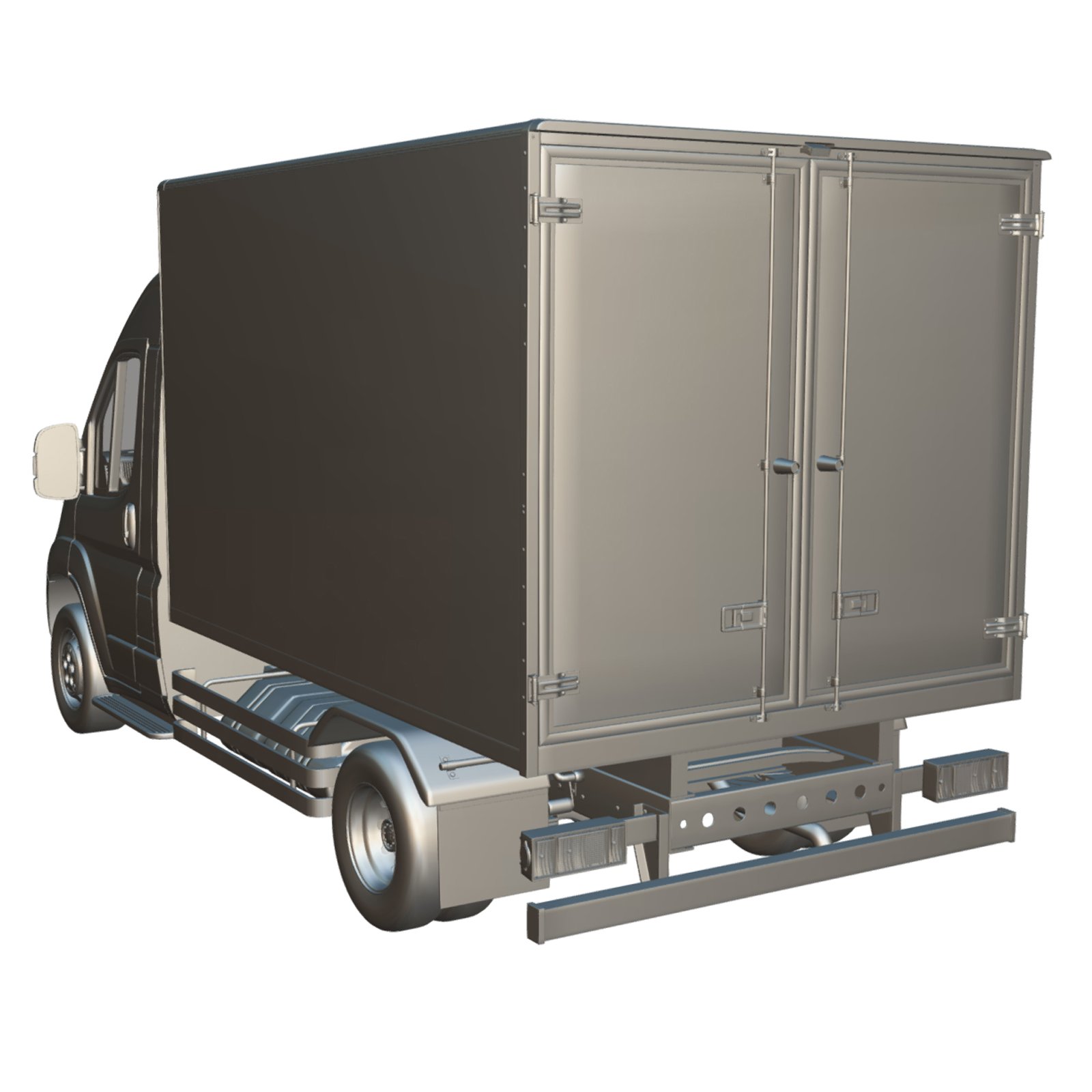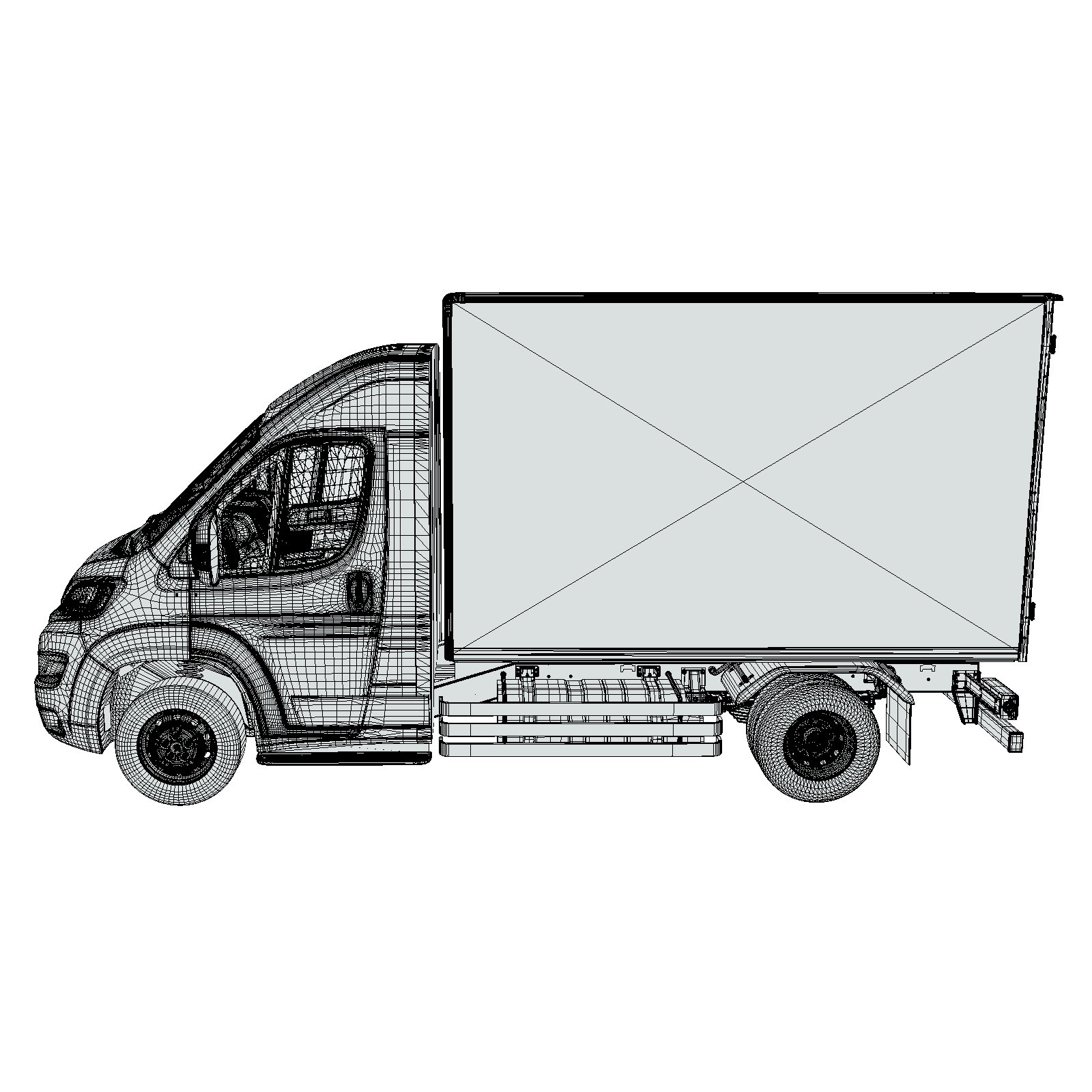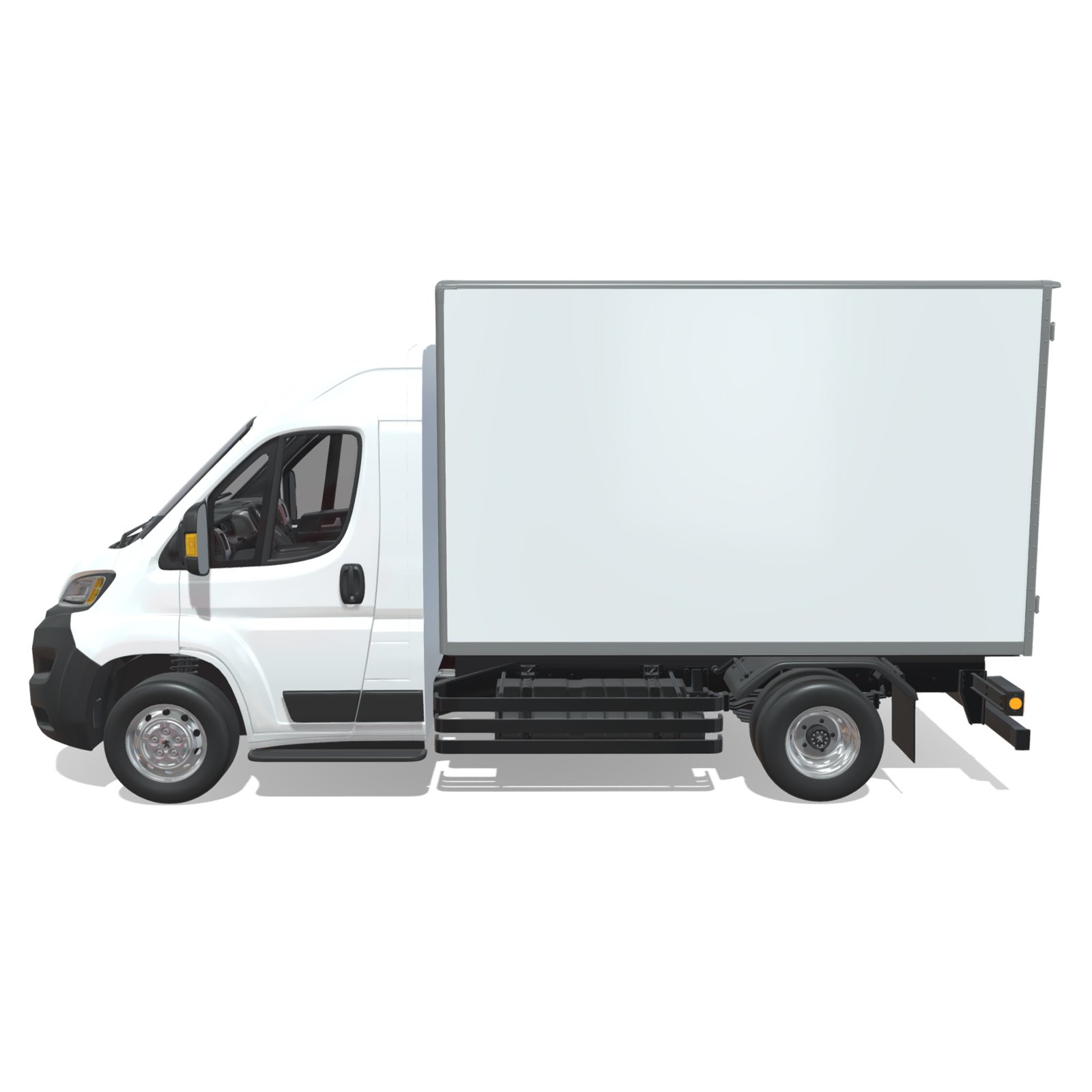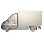 The model features a high-quality exterior design, including the cargo van body structure, chassis components, and wheels. It also includes a fully modeled interior cabin, featuring the dashboard, steering wheel, driver and passenger seats, and other essential interior elements to provide a realistic and complete vehicle representation.