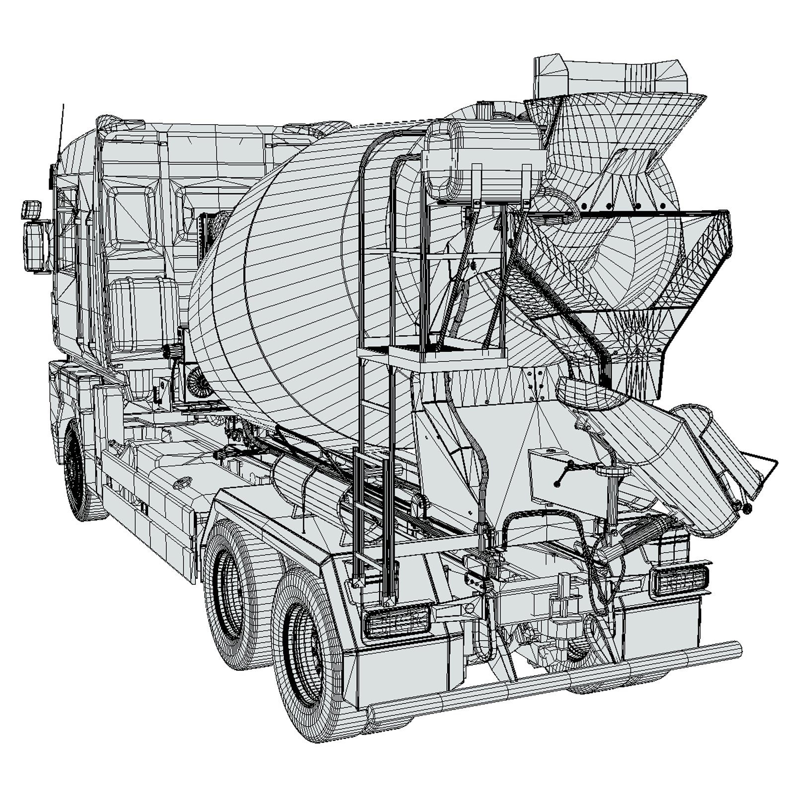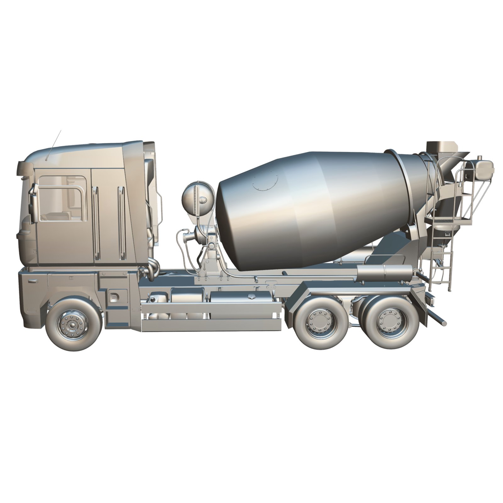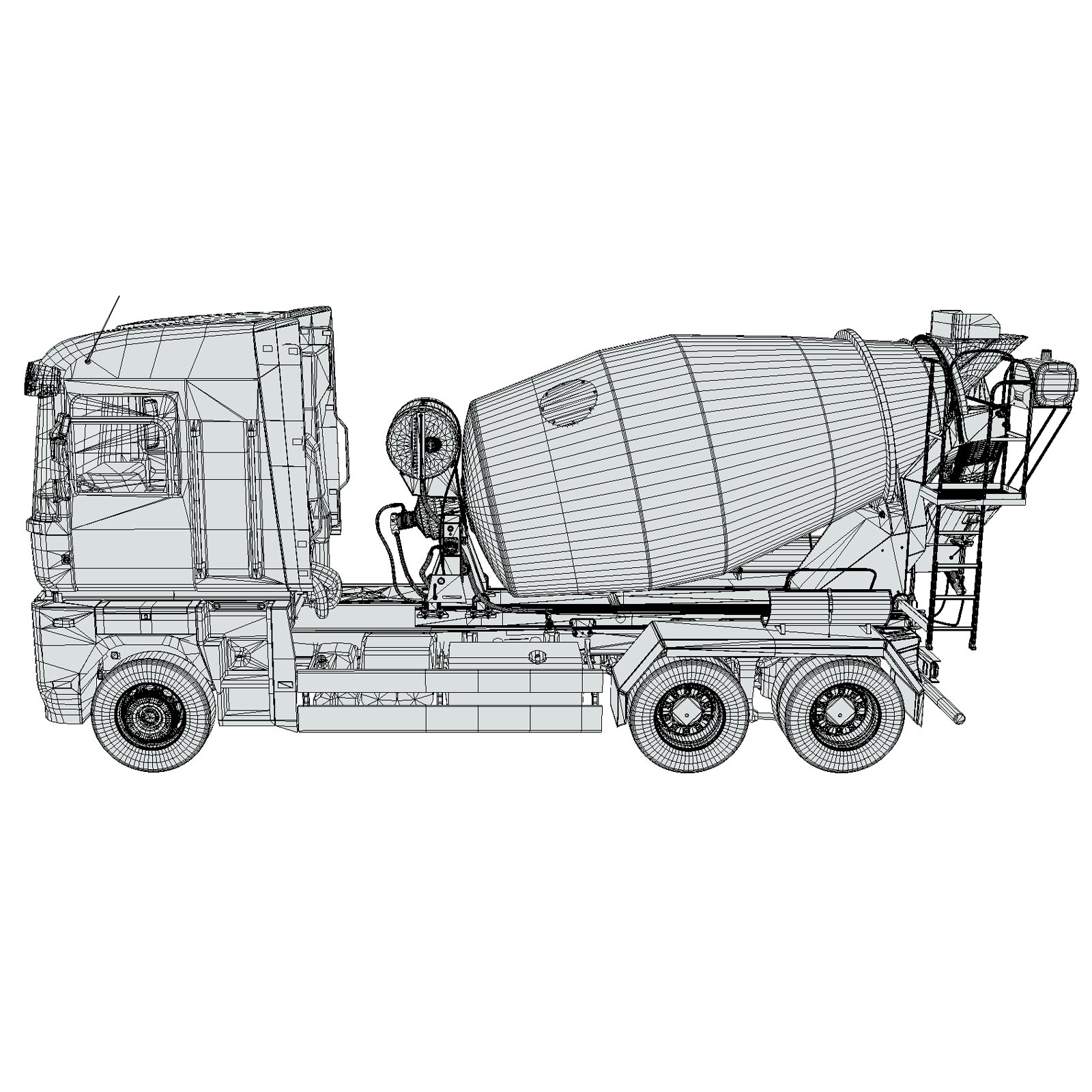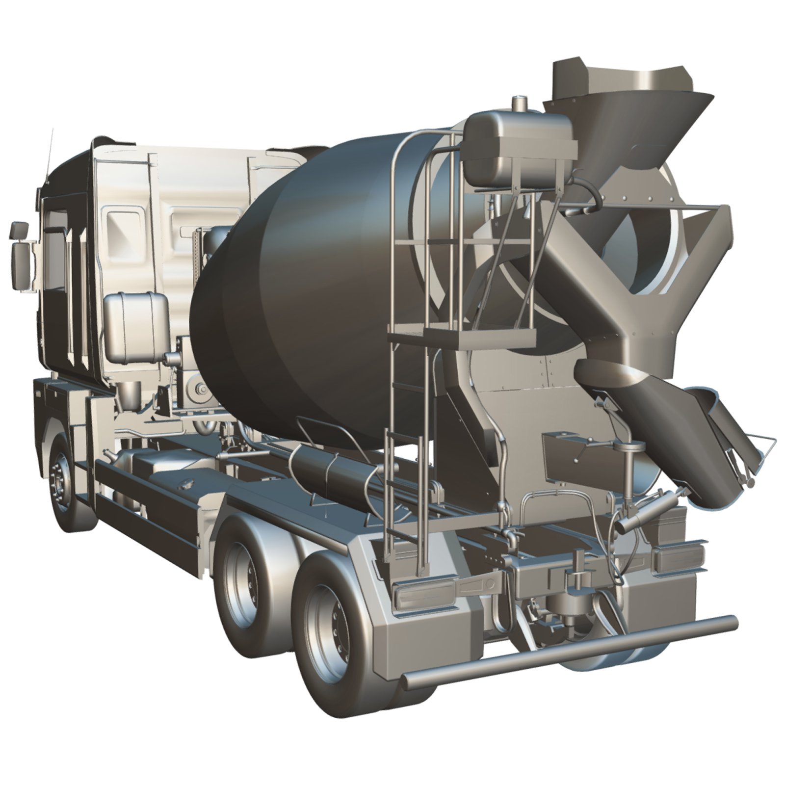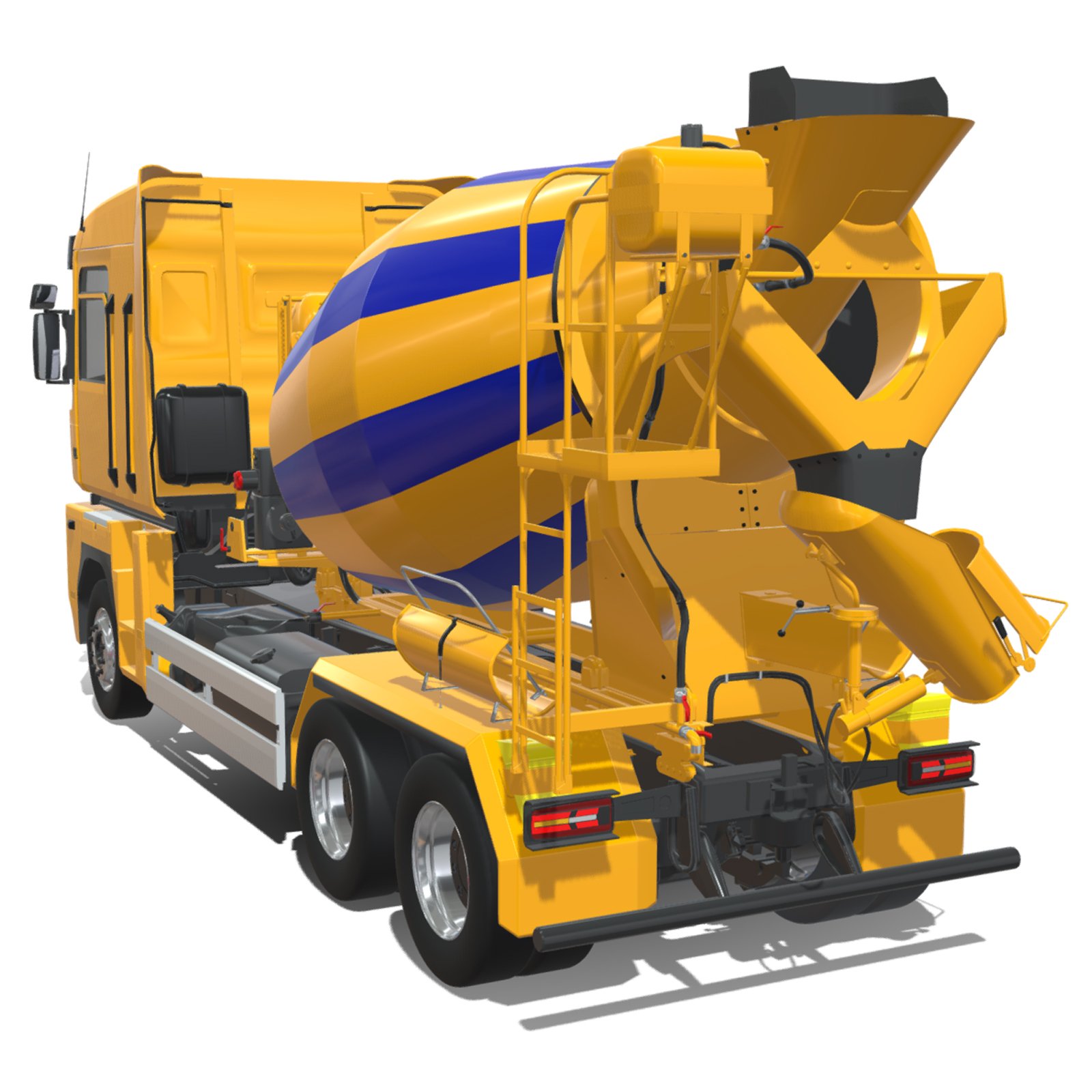 - Detailed Mixer Components: Includes drum, frame, cab, wheels, and construction features.