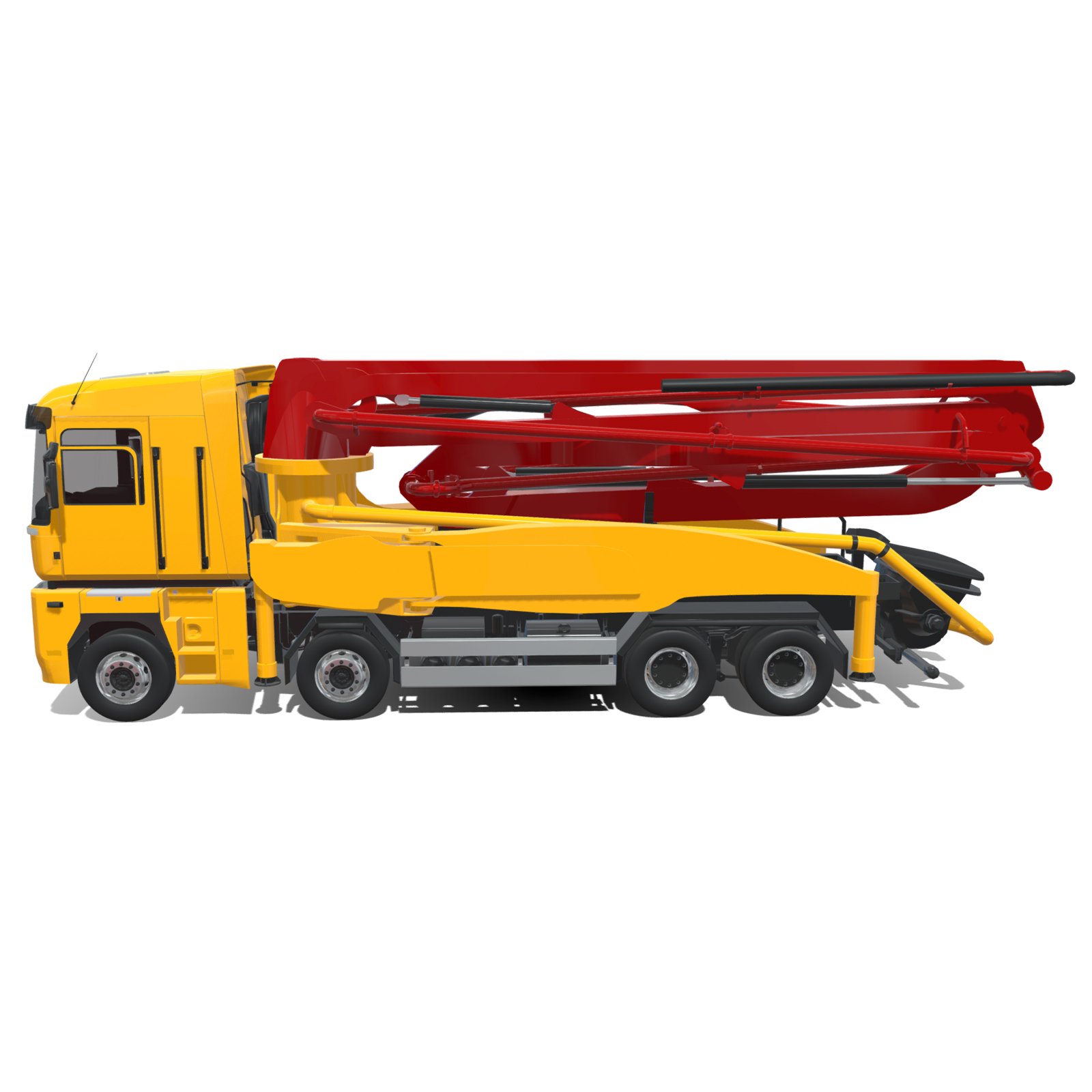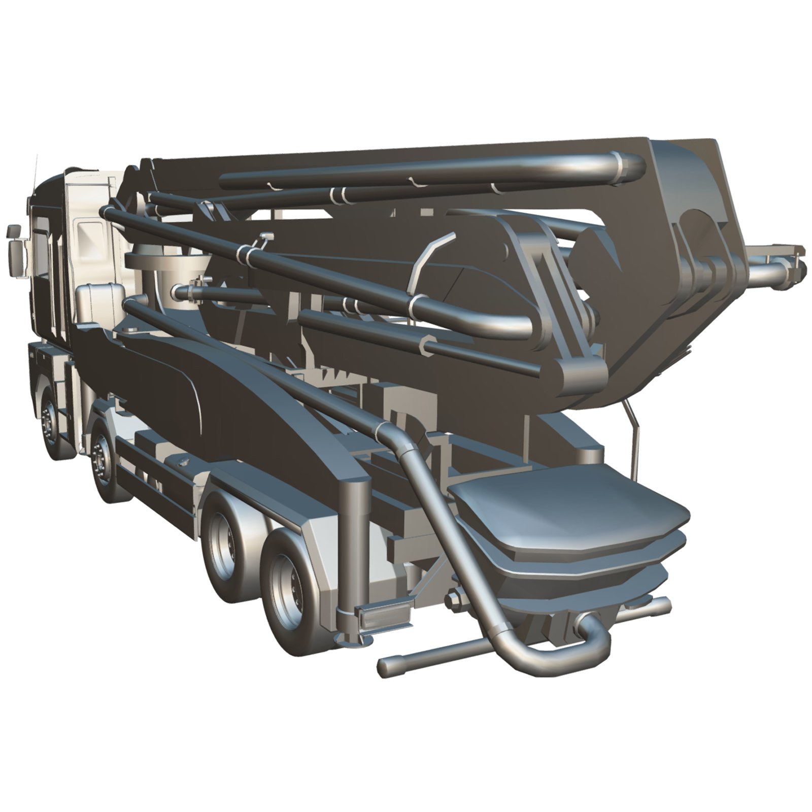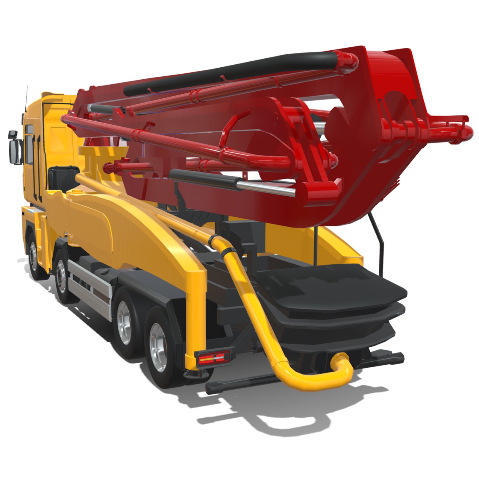 - Detailed Concrete Pump Components: Includes drum, frame, cab, wheels, and construction features.