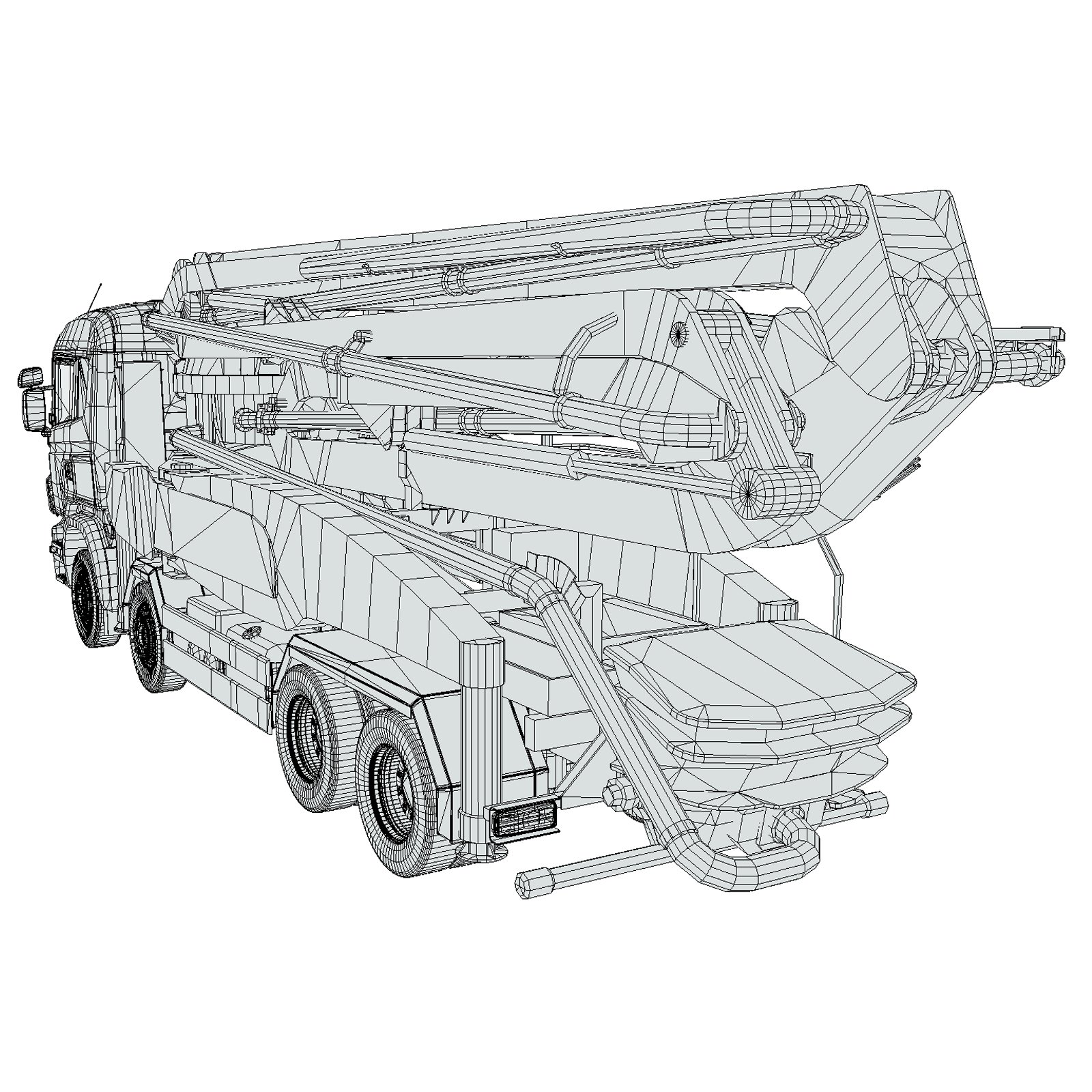 - Detailed Pump System, chassis, stabilizers, cab, and wheel assemblies.