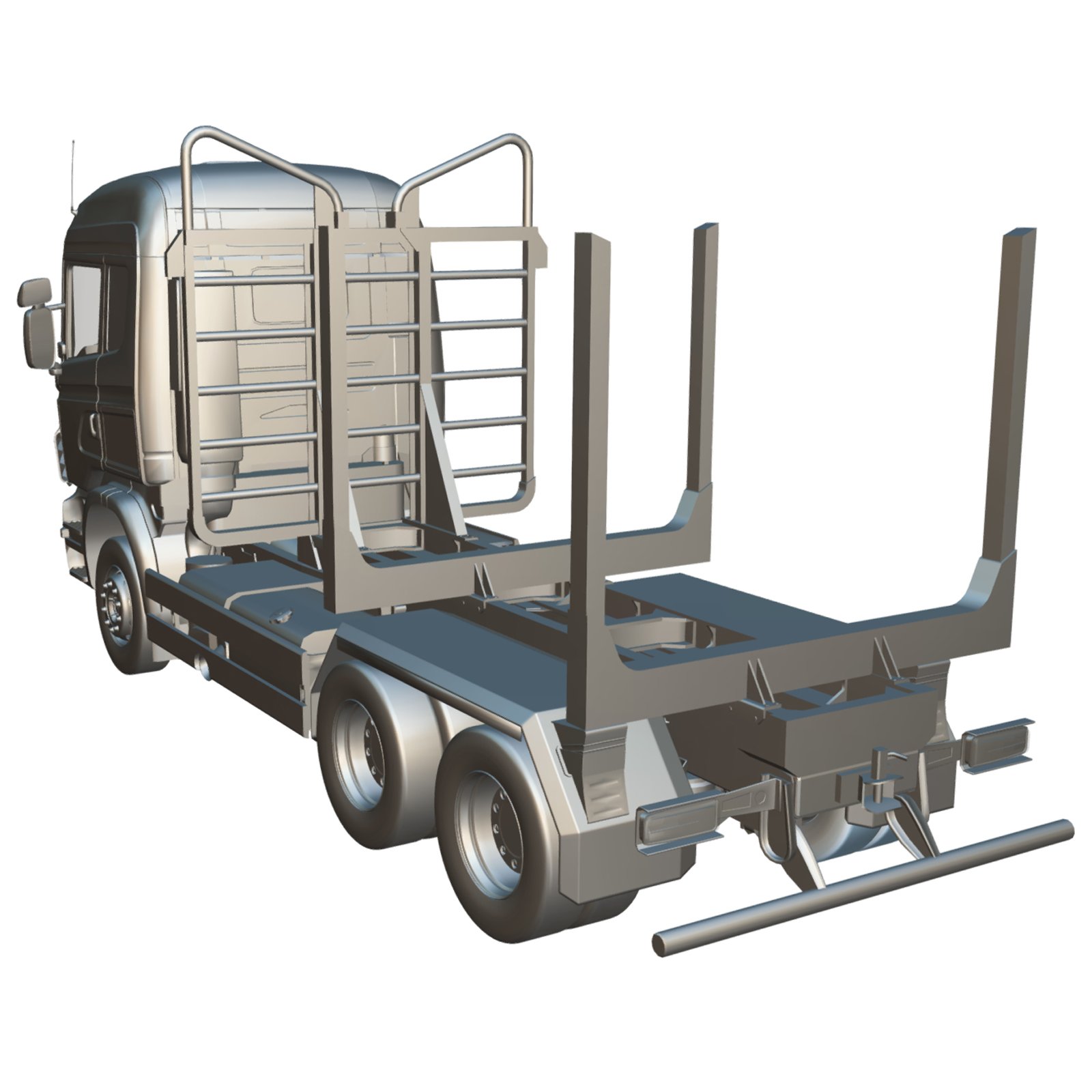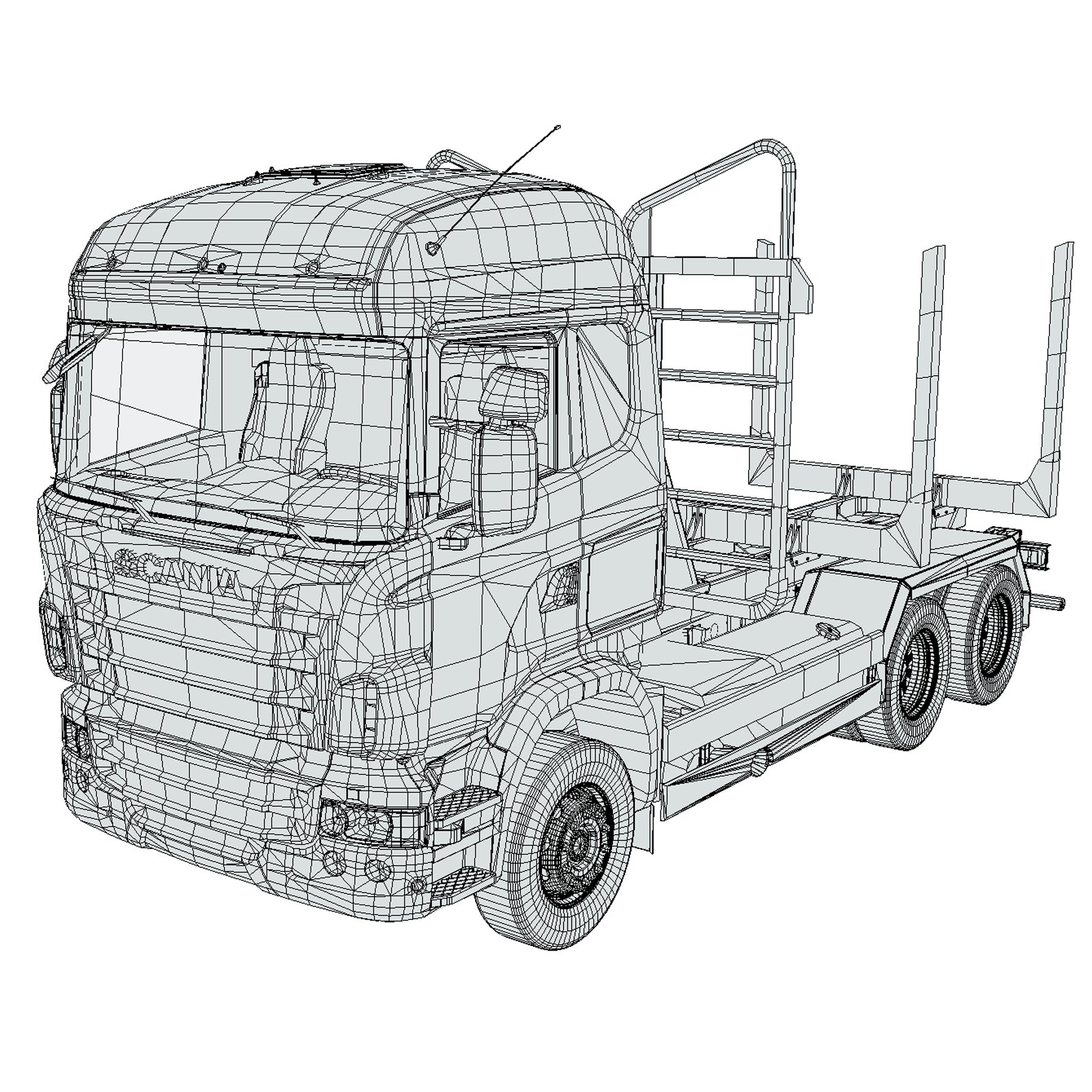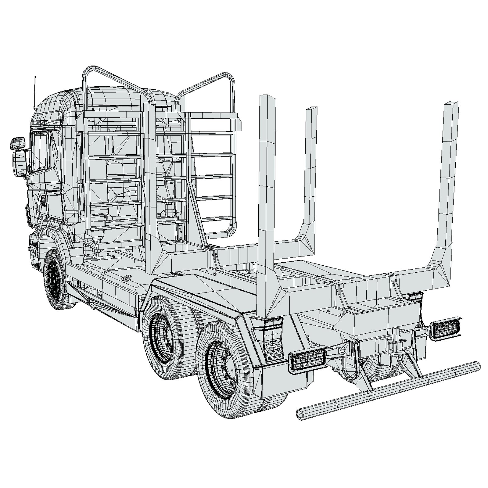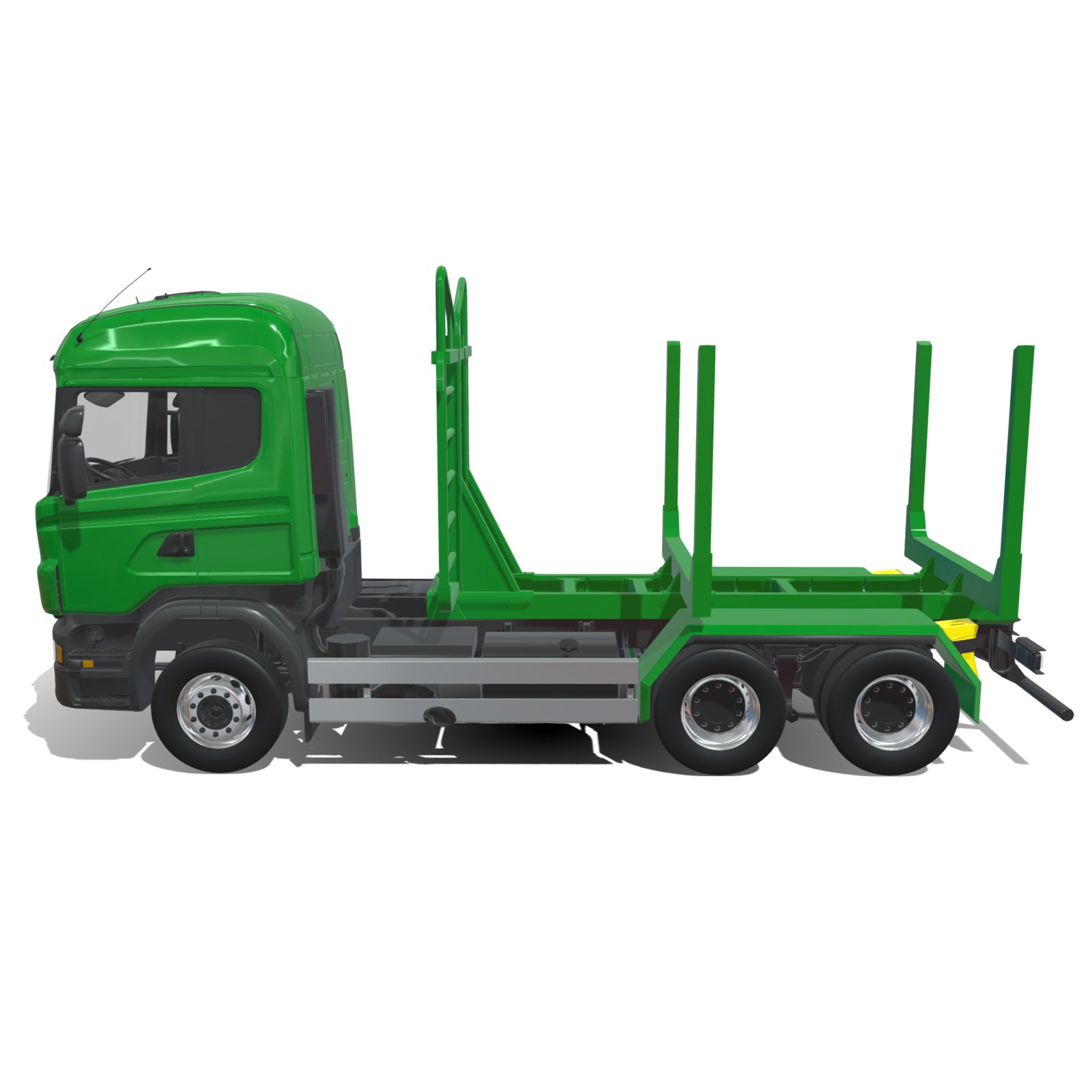 A realistic Scania R490 2018 Logs Truck 3D Model created in 3ds Max, featuring clean low-poly geometry and a detailed log-carrier frame. Ideal for forestry scenes, cargo simulations, games, and industrial visualization. No textures included.