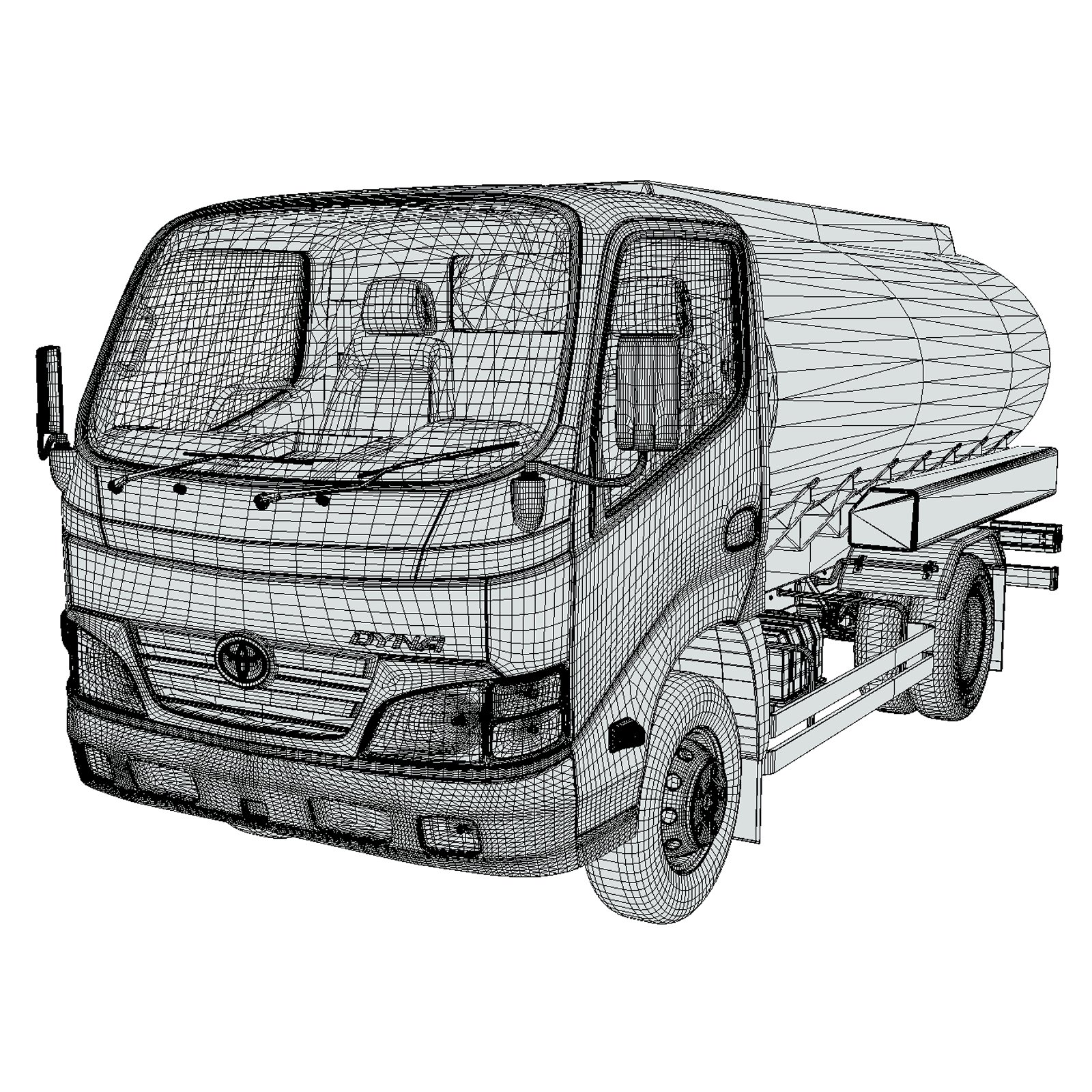 A high-quality Toyota Dyna 2010 Long Tanker 3D model featuring detailed exterior, tanker body, and interior cabin. Built with clean geometry and real-world proportions. Geometry only; textures and UV maps are not included.