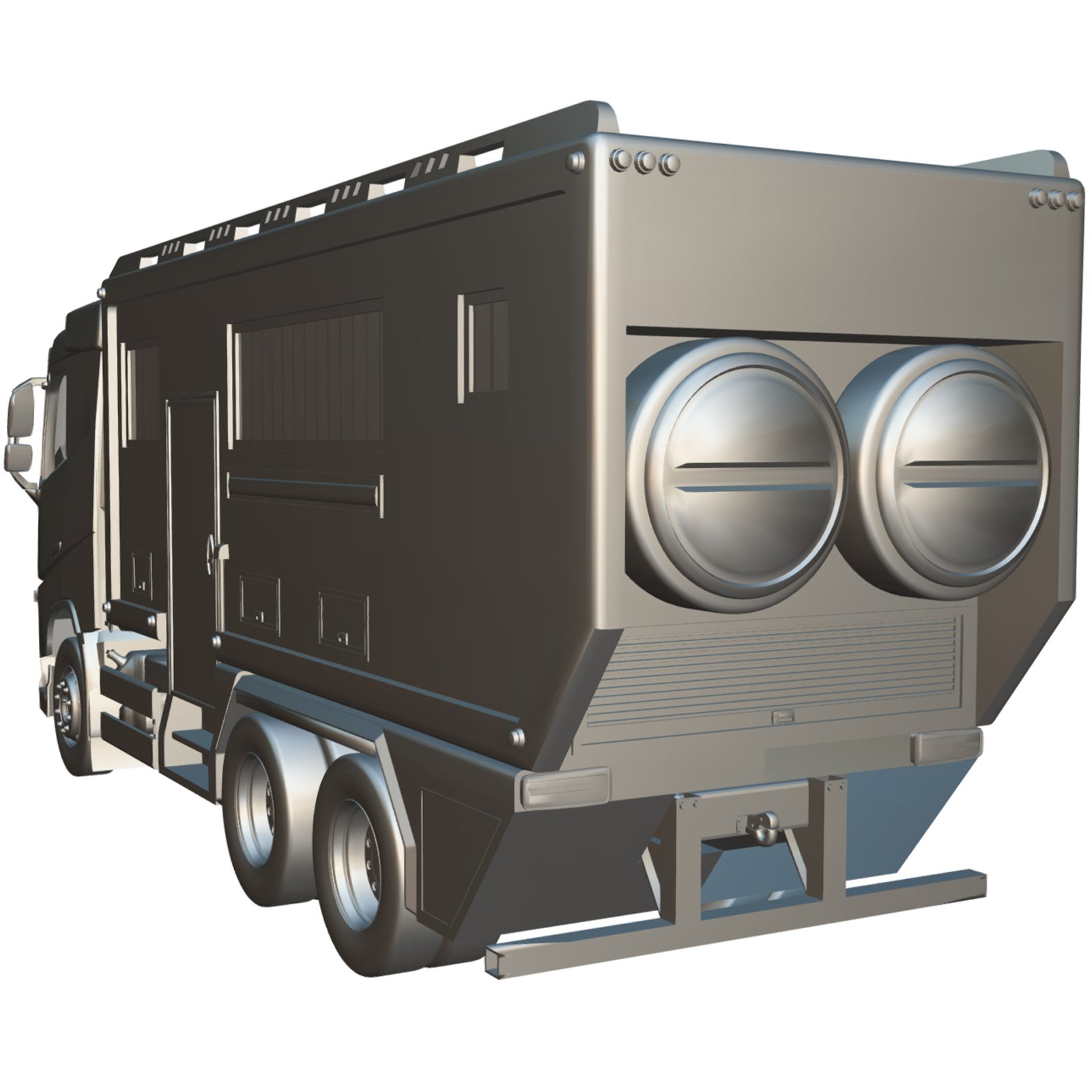 - Detailed Exterior: Wheels, cabin, rooftop elements, side storage compartments, windows, and more.