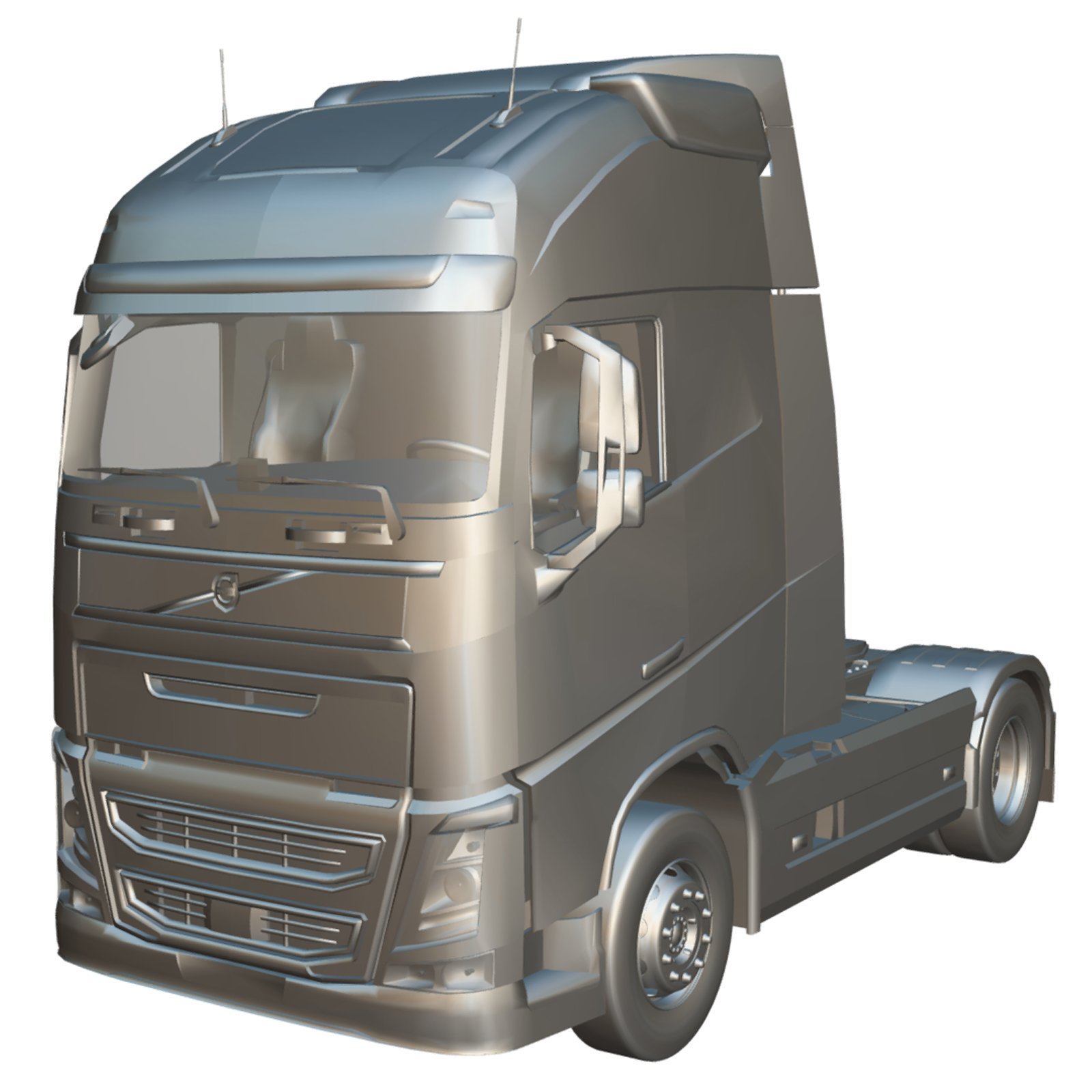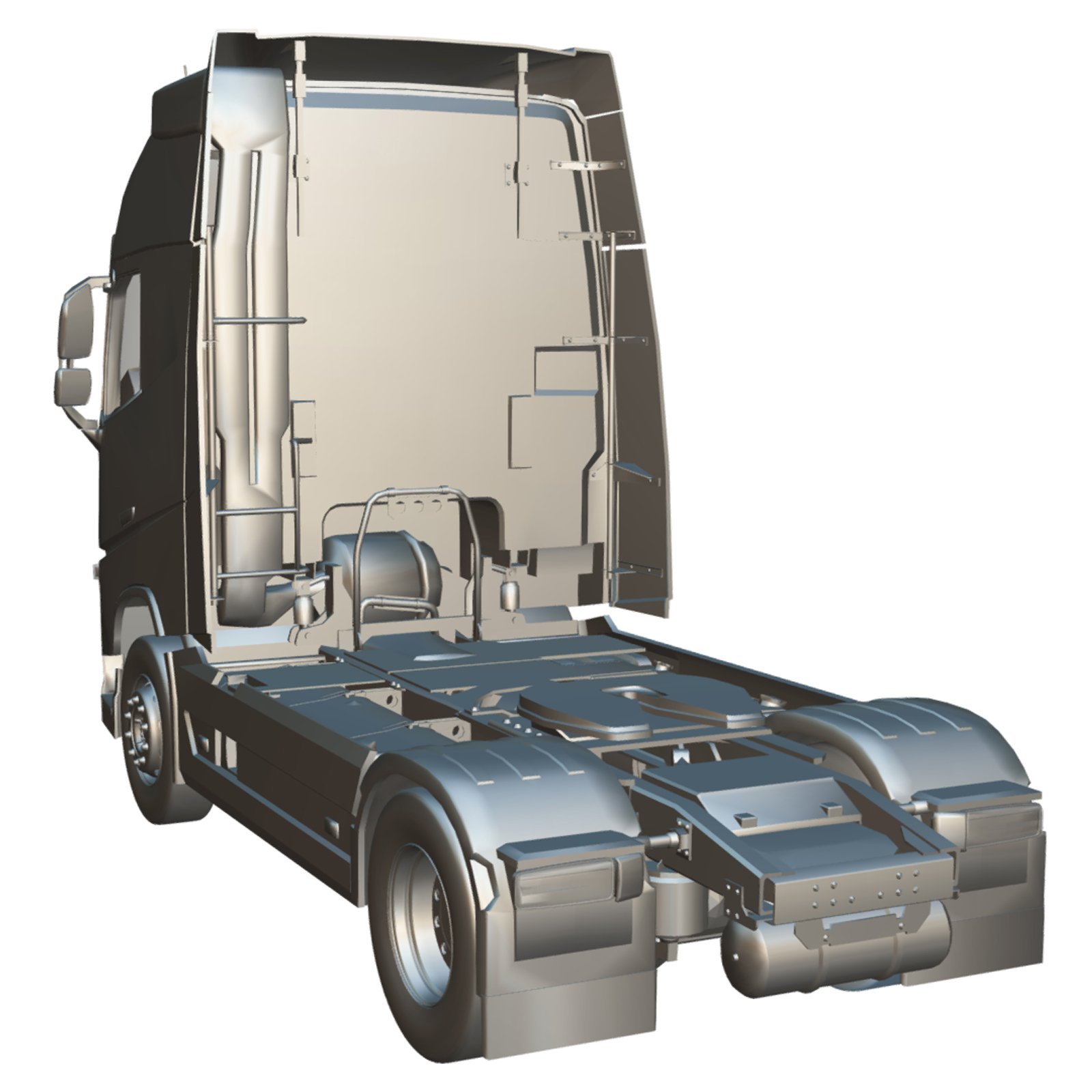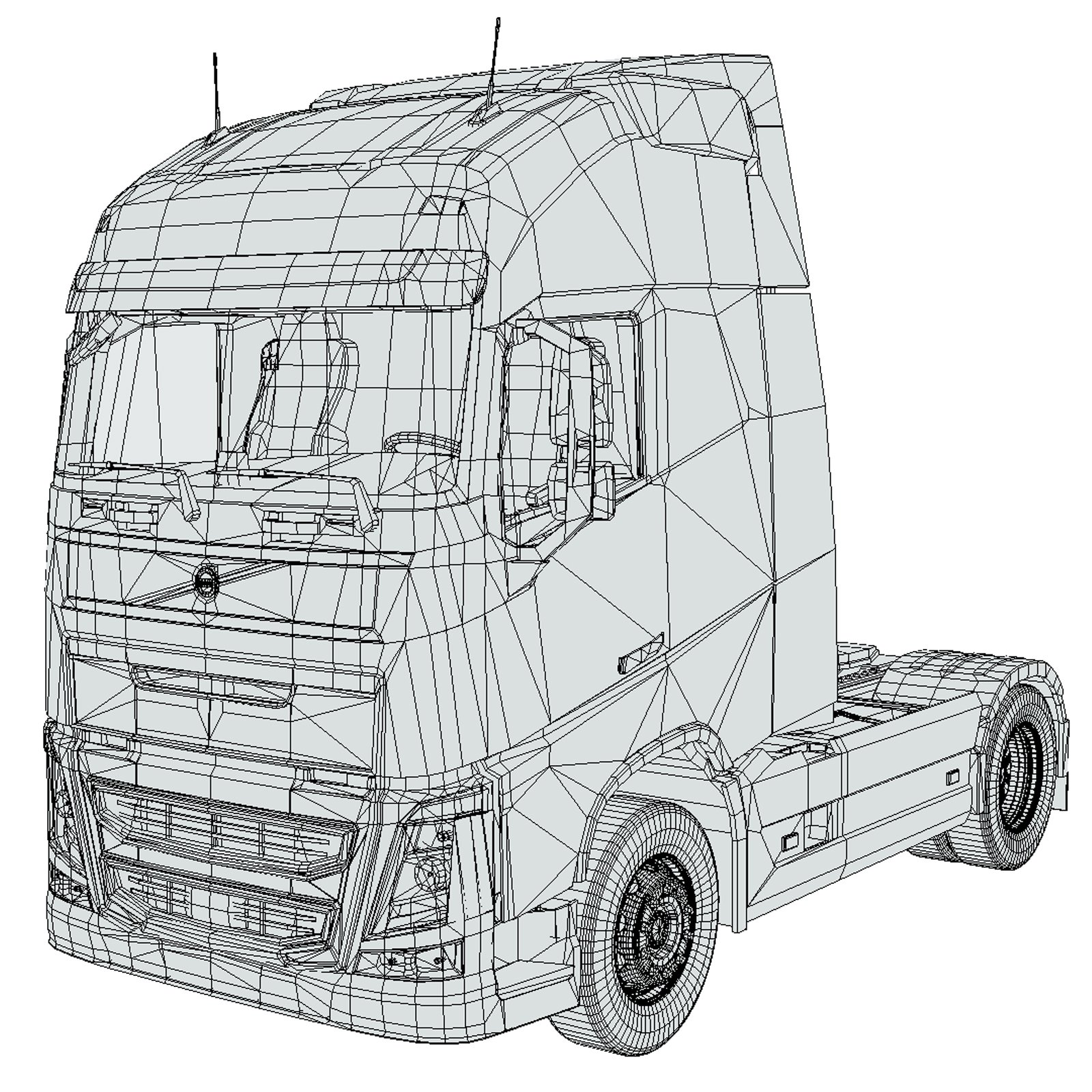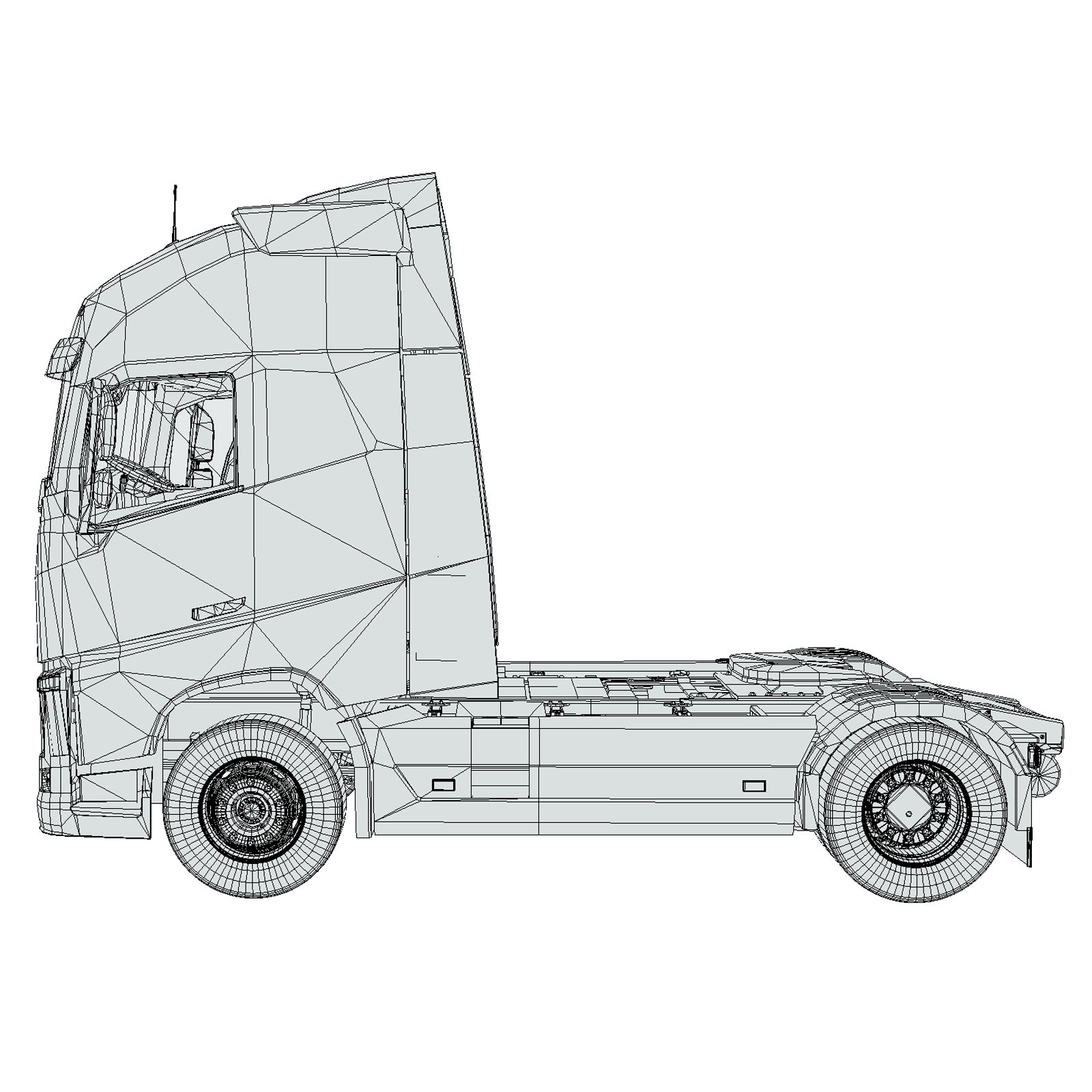 A detailed Volvo FH4 2018 Globetrotter XXL 3D Model created in 3ds Max, featuring clean low-poly geometry and a realistic long-haul XXL cabin. Ideal for simulations, transport scenes, games, and industrial visualization. No textures included — ready for custom materials.